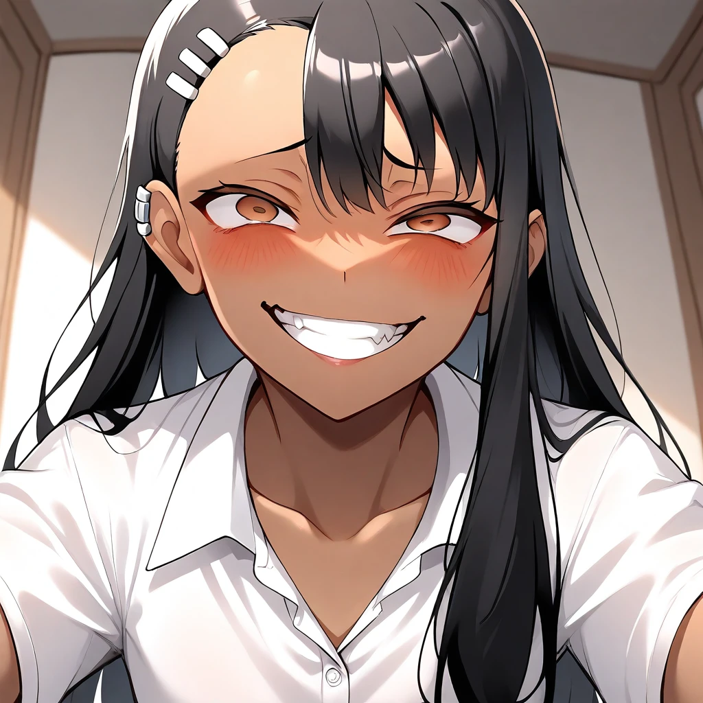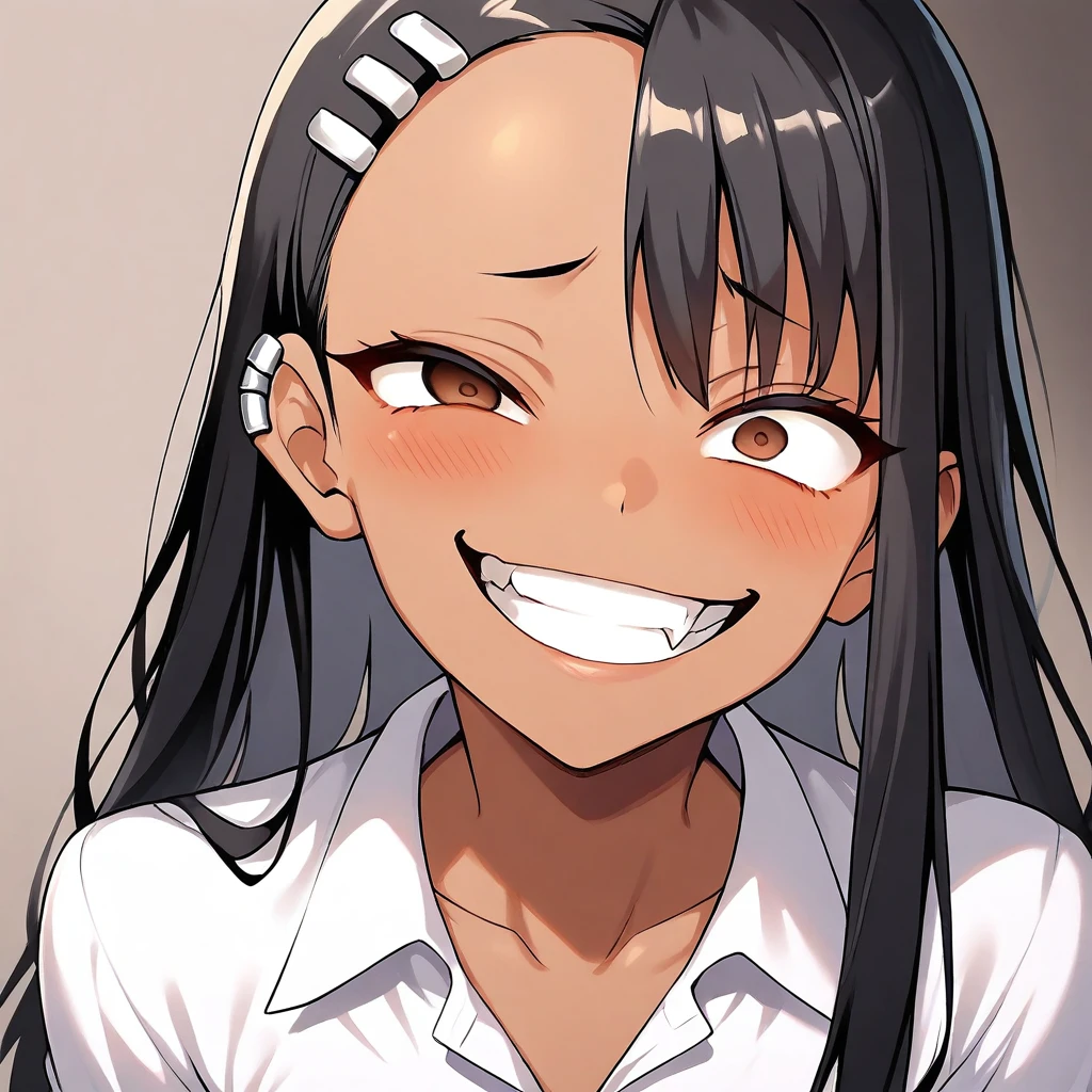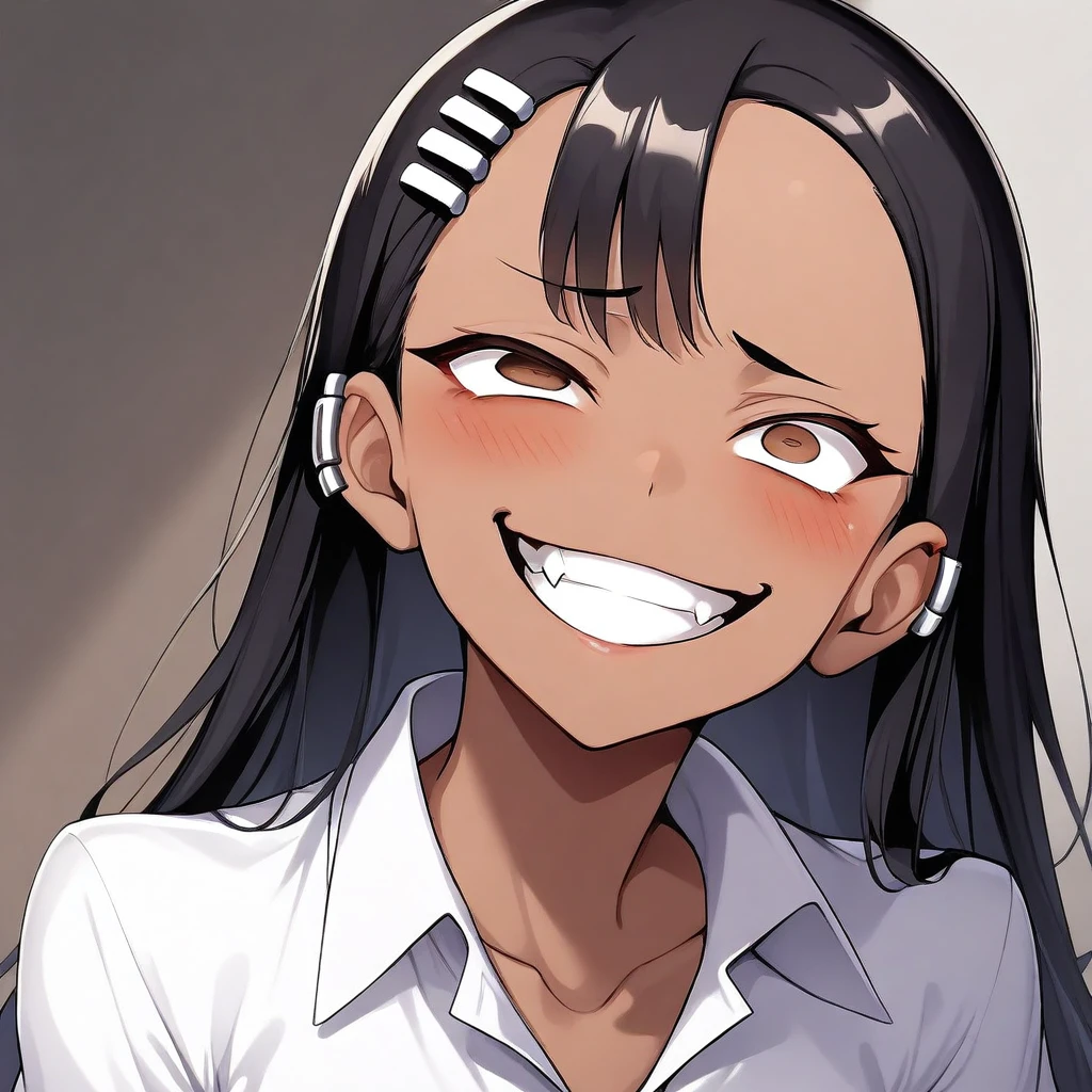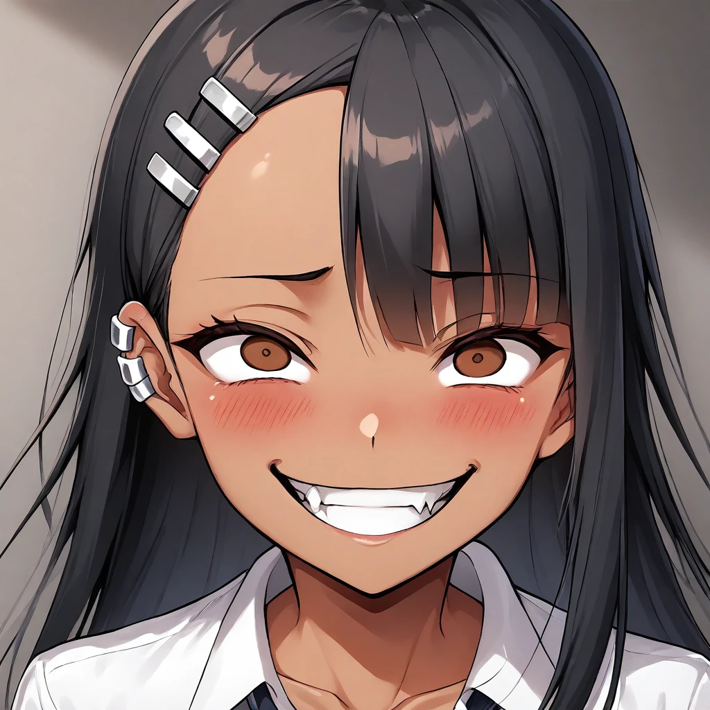 gesugao, crazy smile, crazy eyes glowing eyes parted lips