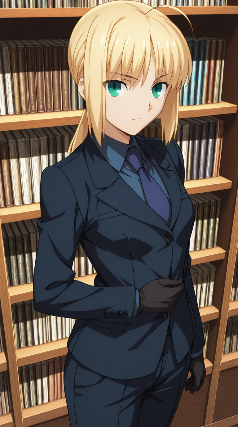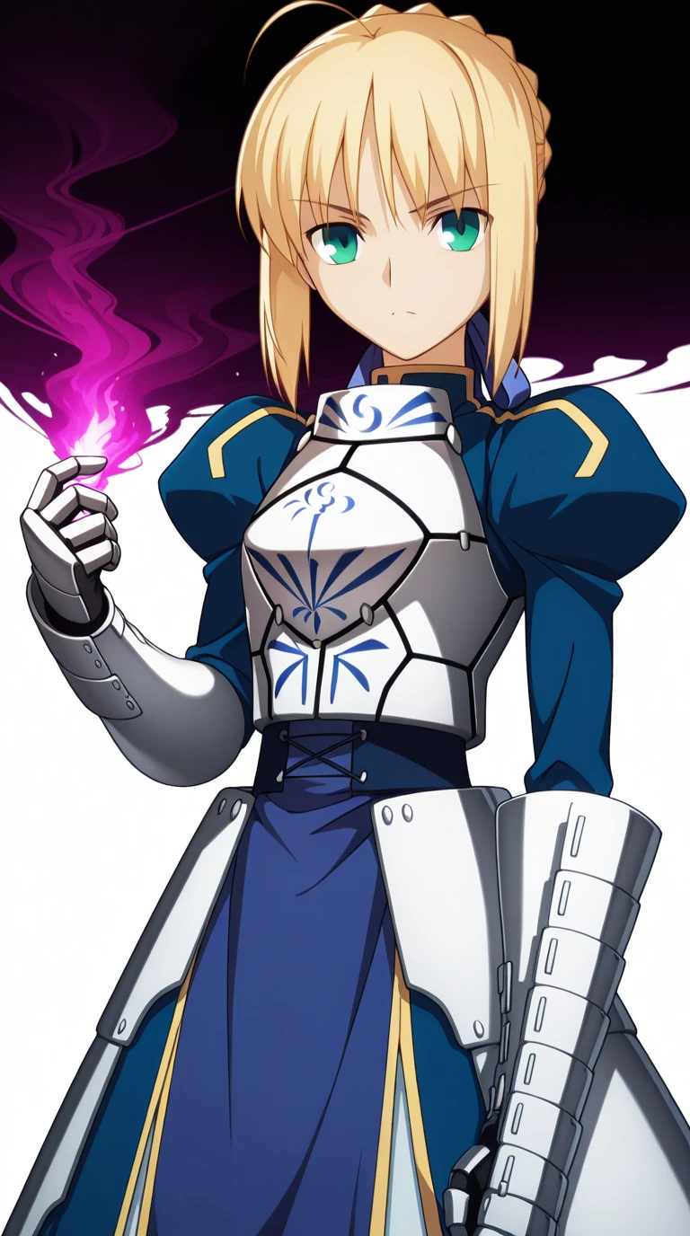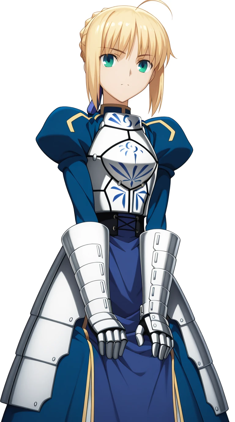 artoria pendragon, artoria pendragon (fate), saber, long hair, blonde hair, green eyes, ponytail, ahoge, mature female, small breasts, anime screencap