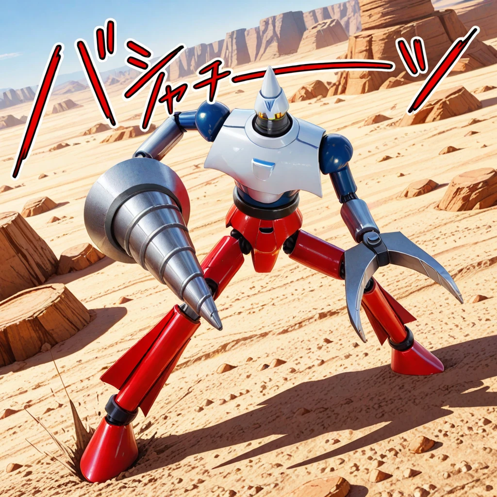 Getter-Type2, white head, white chest, yellow abdomen, red lower_body, blue upper_arms, big Pliers arm, Drill arm,