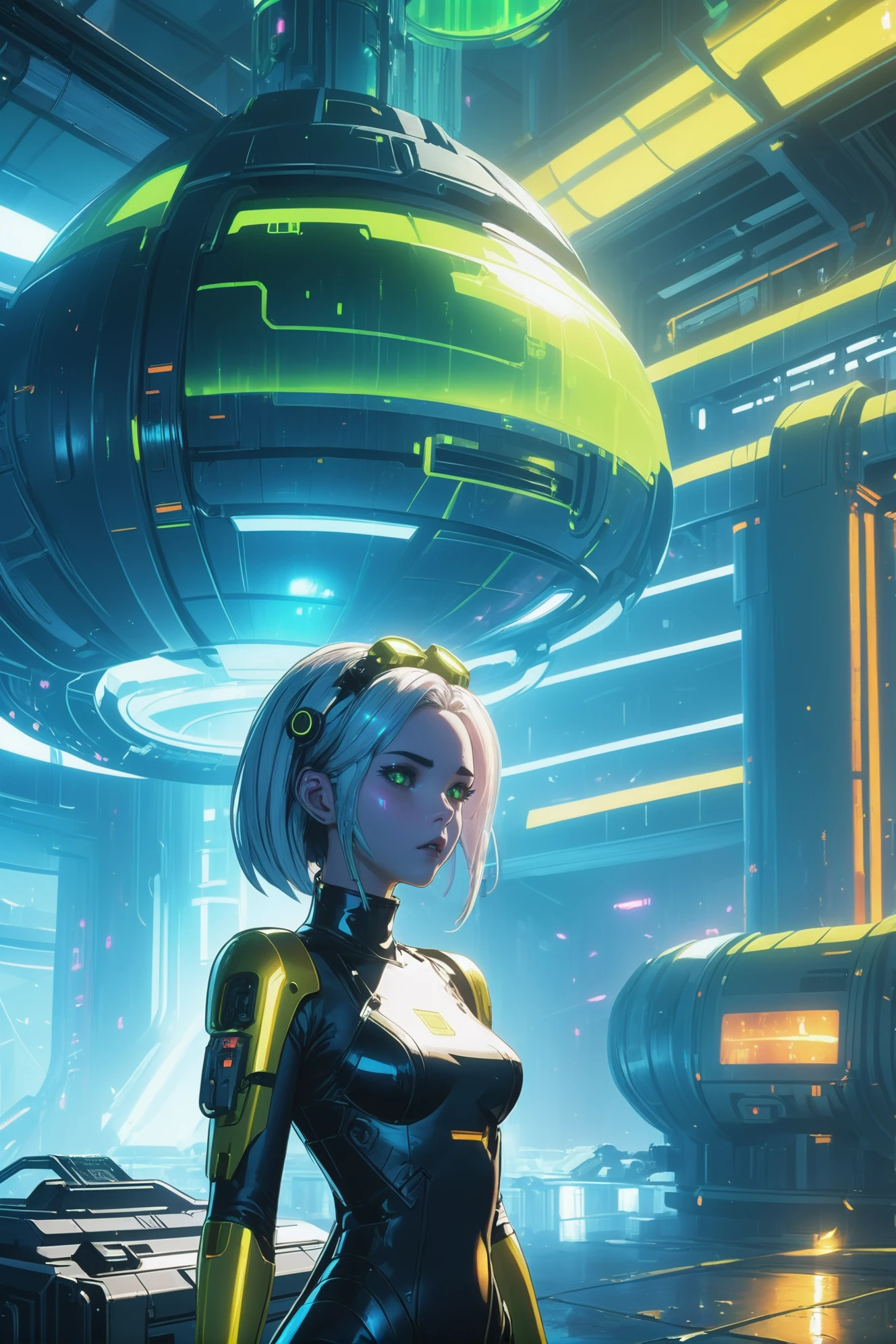 Another architecture/setting LoRA, this one gives everything a streamlined scifi look, with shiny chrome and blue glass. There's no one specific trigger word, but check out the sample generations for various ideas to get different looks out of it.