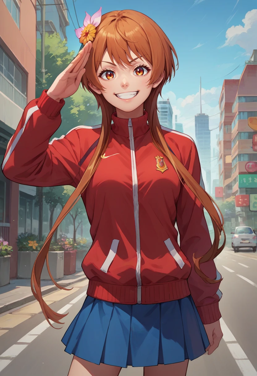 Trigger + Appearance: tachibana marika, short hair with long locks, hair flower