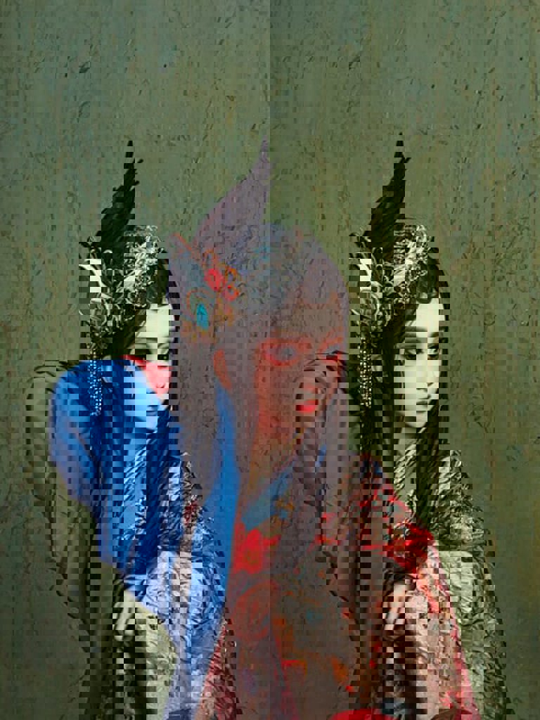 Some tag examples:clothes_jingju,1girl, solo,_____ hair, hair ornament, makeup,portrait,grey background, upper body, long hair,simple background, chinese clothes, _____ eyes, long sleeves, flower,closed mouth