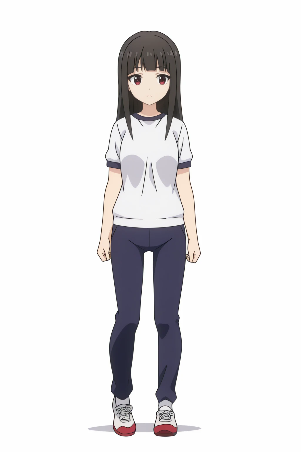 long hair, blunt bangs, sidelocks