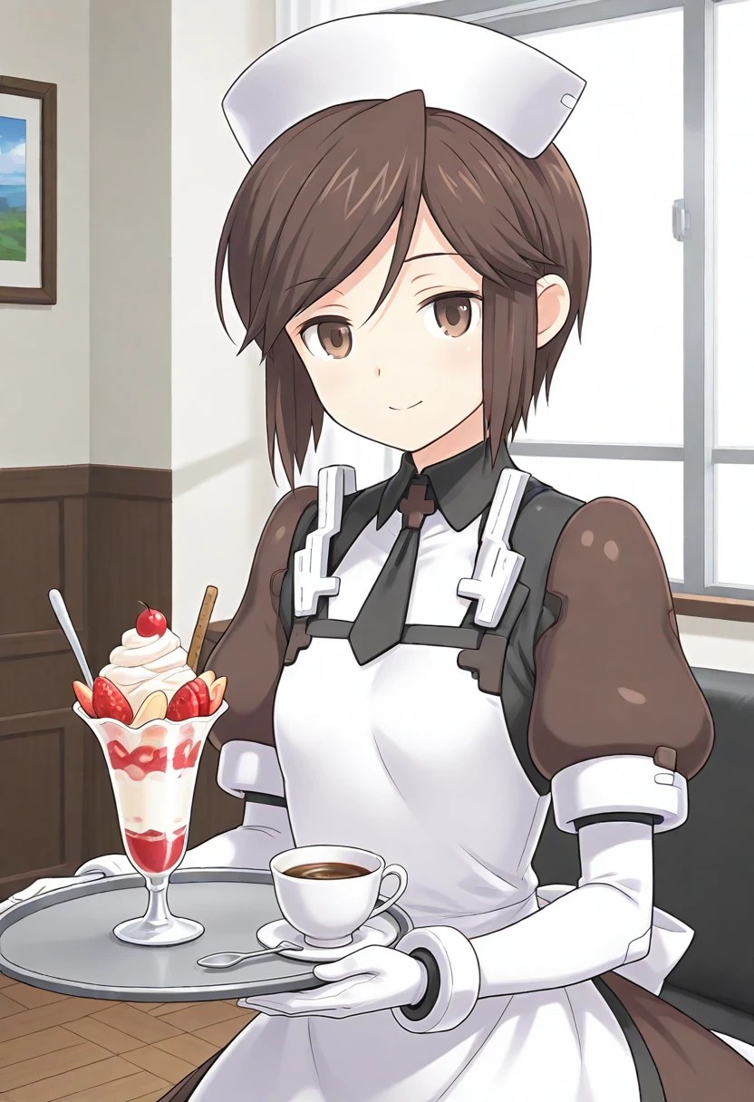 maid, gloves, hat, nurse cap, black pantyhose, necktie, apron