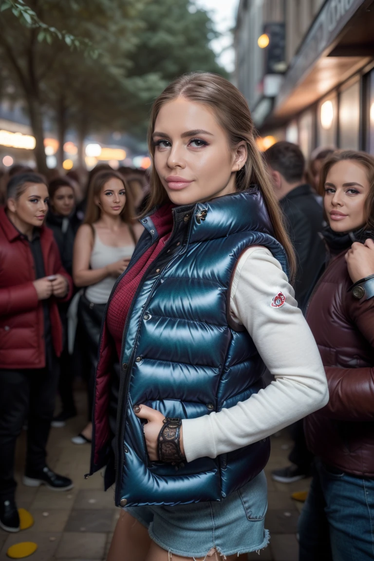 , photo , (best quality), (masterpiece), (realistic), (intricate), <lora:AlessandraJaneQuiron_v09i01e25t05_Lora:1> alessandrajaneQuiron woman, graphic crop top, neon leggings, Reebok high-tops, jelly bracelets, standing,
