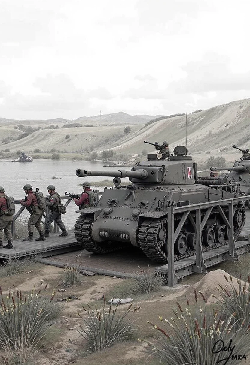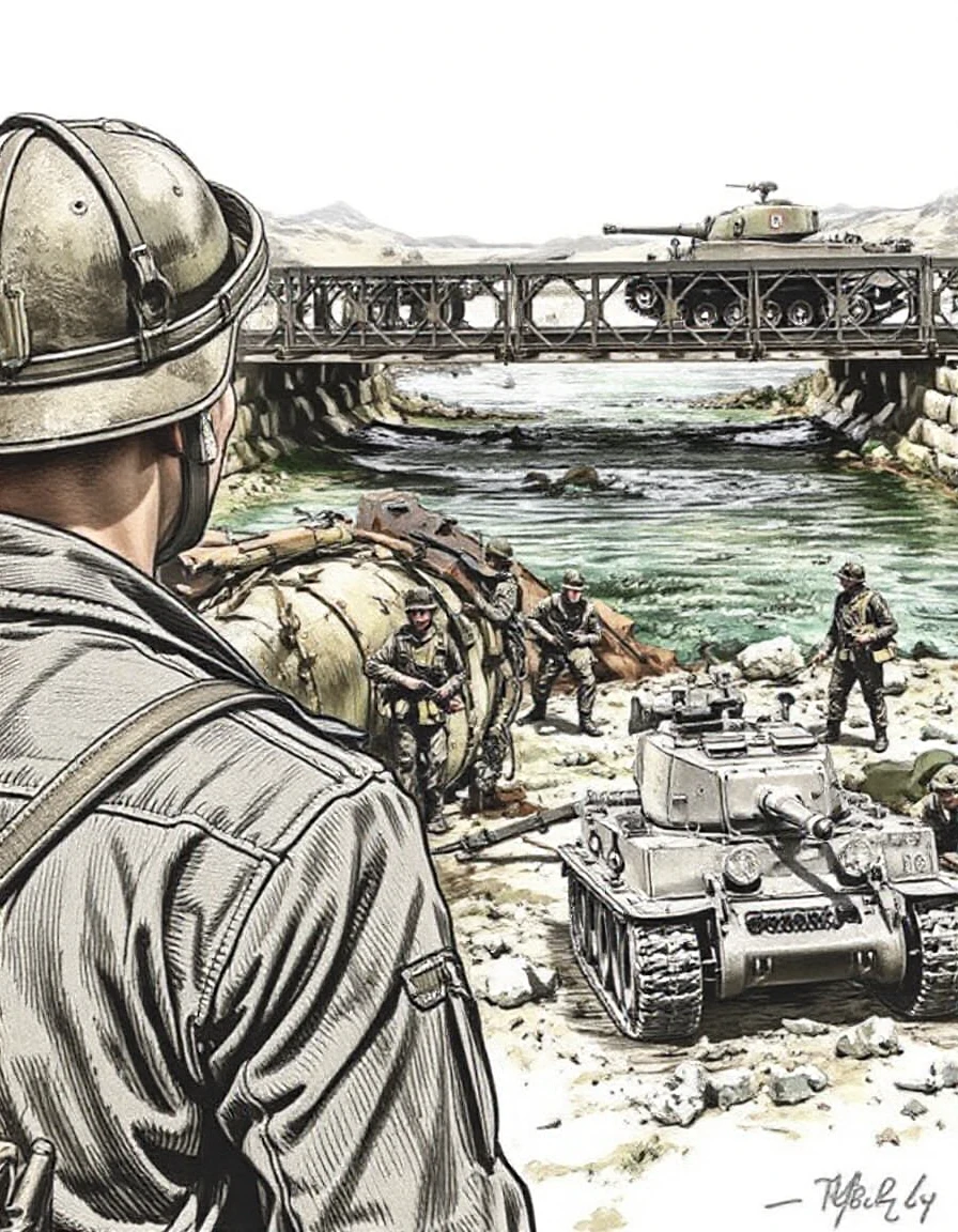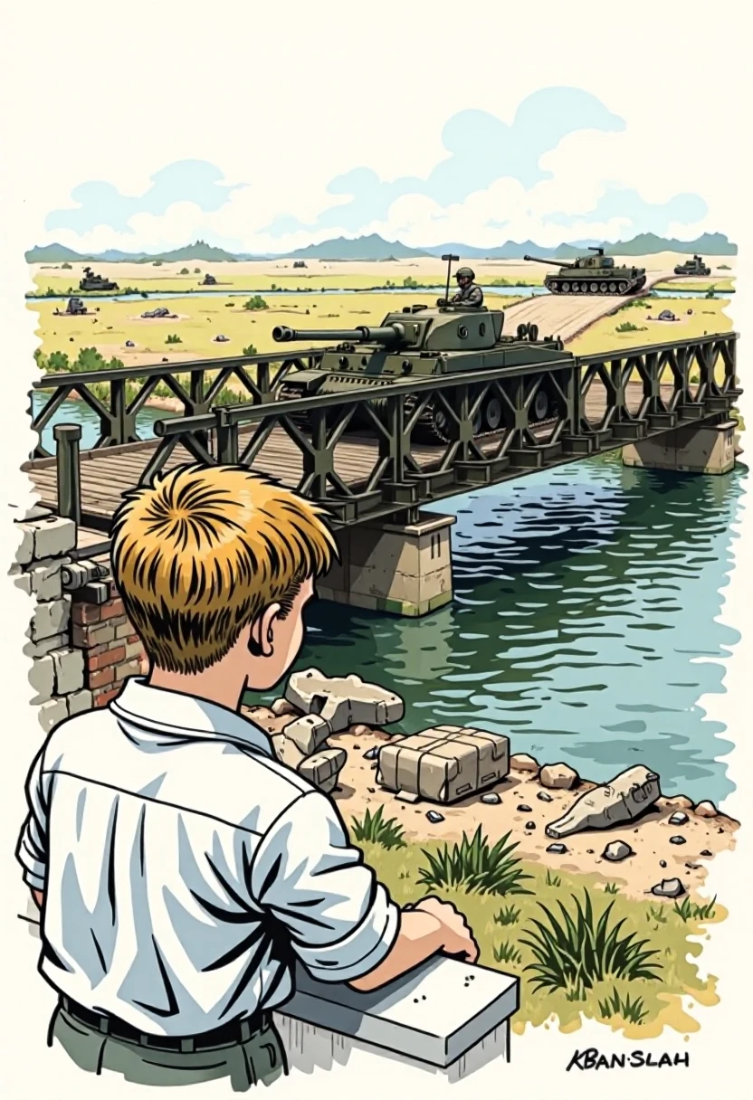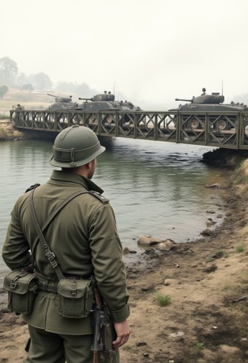 This is a temporary bridge that is familiar from war movies.Please use it to create AI dioramas.
