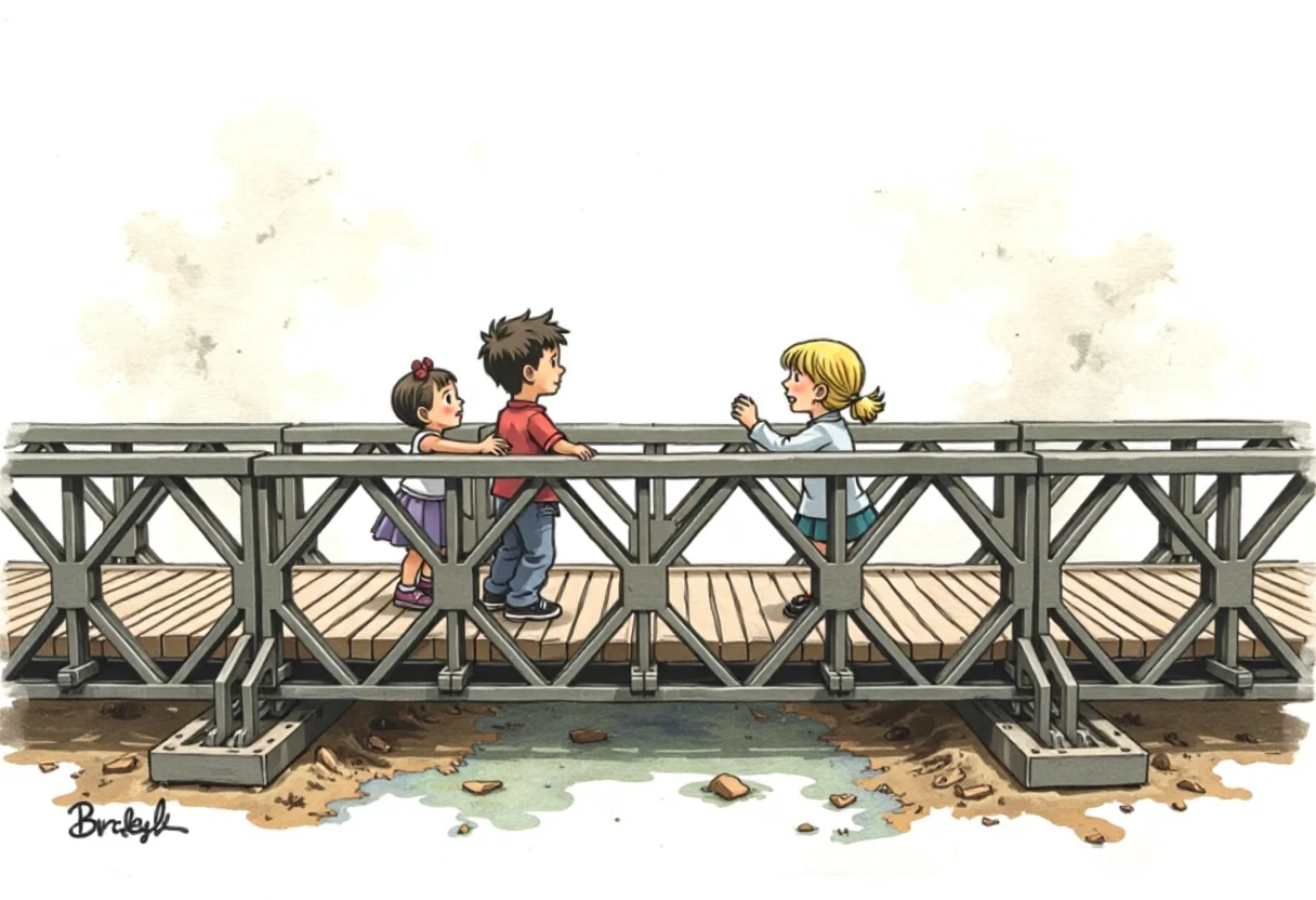 ベイリー橋 (Bailey Bridge) とは、現地でユニットを組み立てるだけでクレーンも必要なく構築できるプレハブ工法のトラス橋であり、1930年代、英国戦争省の文官ドナルド・ベイリーによって発案された。わずか数十名で数時間単位で構築しうるその工法は、まさに工学上の奇跡的発明といえるもので、その軍用の仮設橋は第二次世界大戦でイギリス軍、アメリカ軍、カナダ軍に広く活用され、連合国の勝利に大きく貢献した。現在も緊急の交通路を確保するためなどの仮設橋として広く活用されており、また発展途上国ではベイリー橋が恒常的なインフラとして使われている場合も多い。