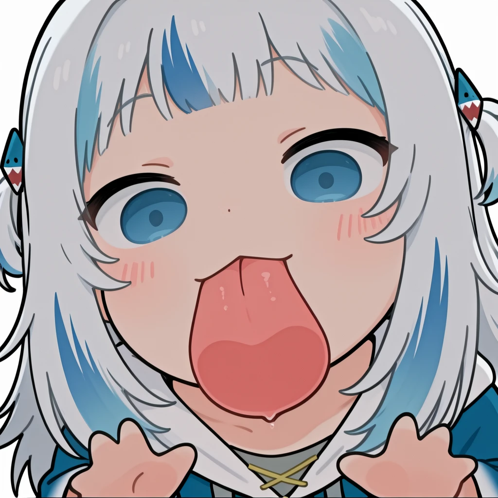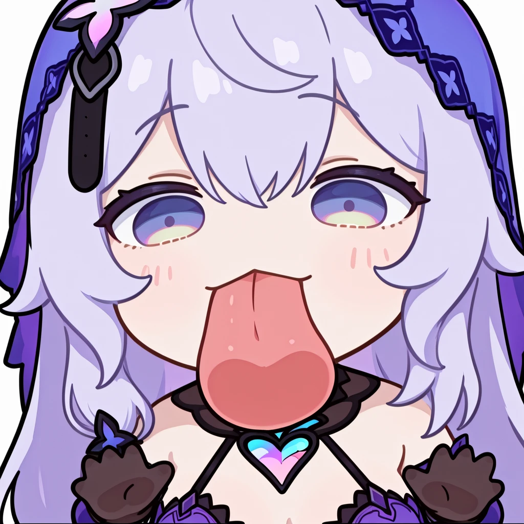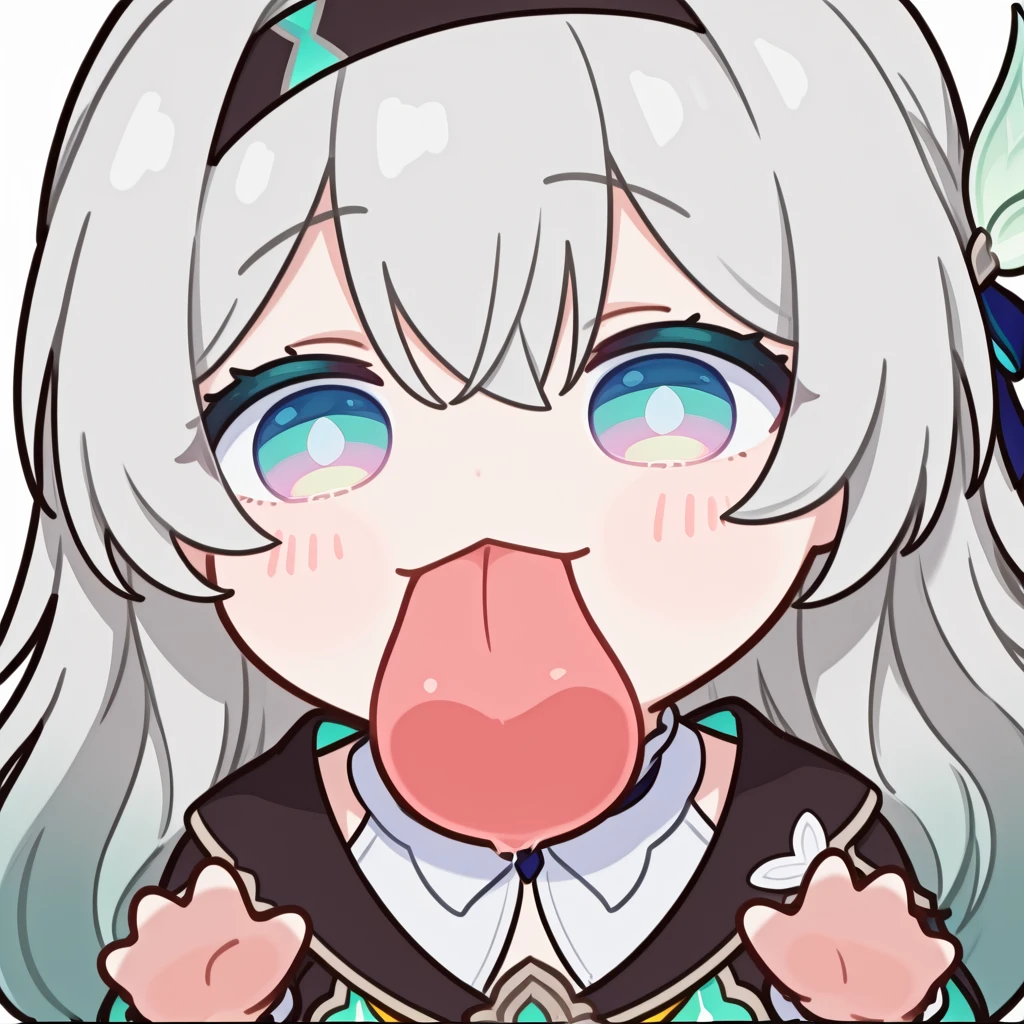 Trigger word: blush_sticker, licking screen, looking at viewer, simple background, tongue, tongue out, chibi, :3