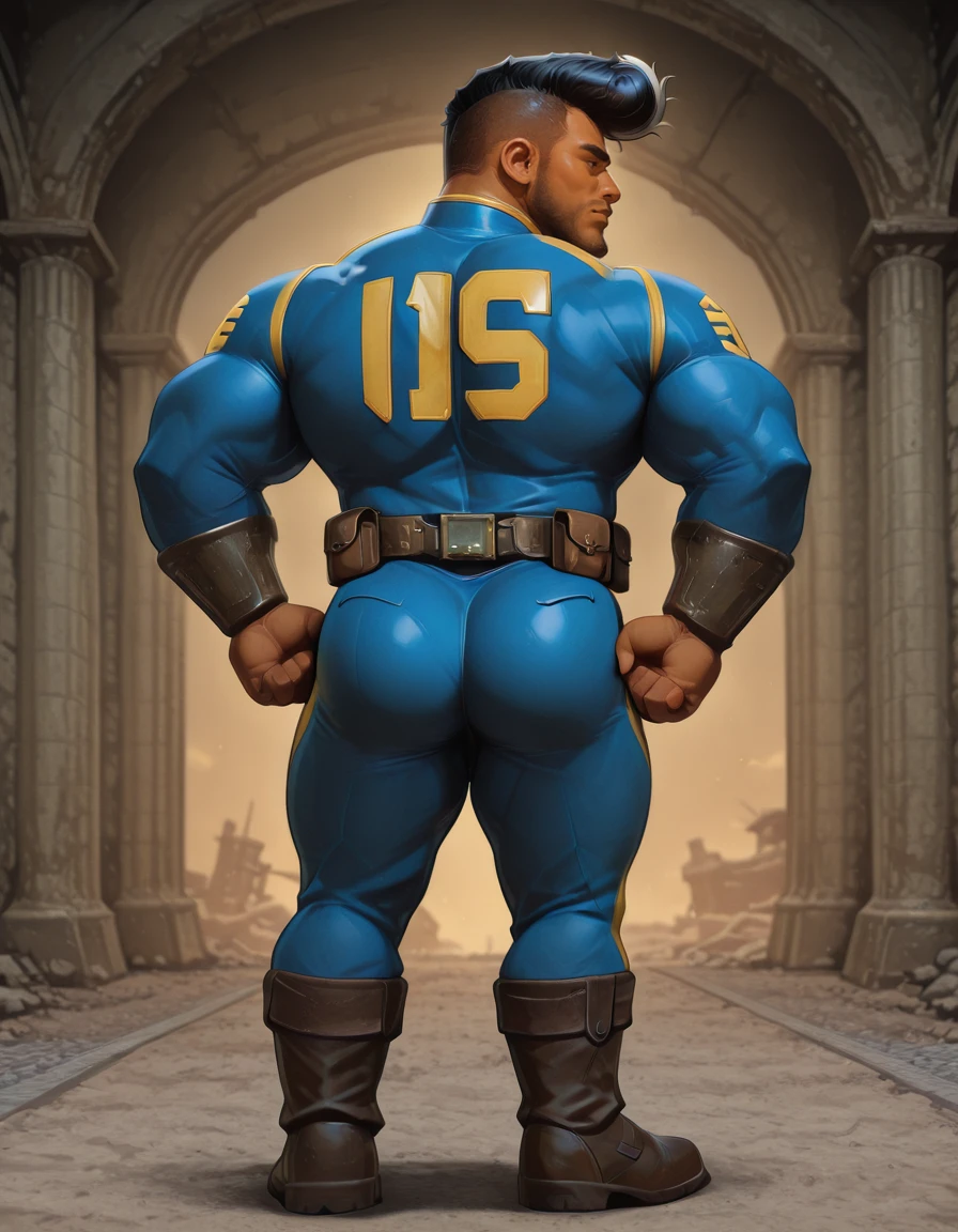 black pompadour with white highlights fallout vault suit