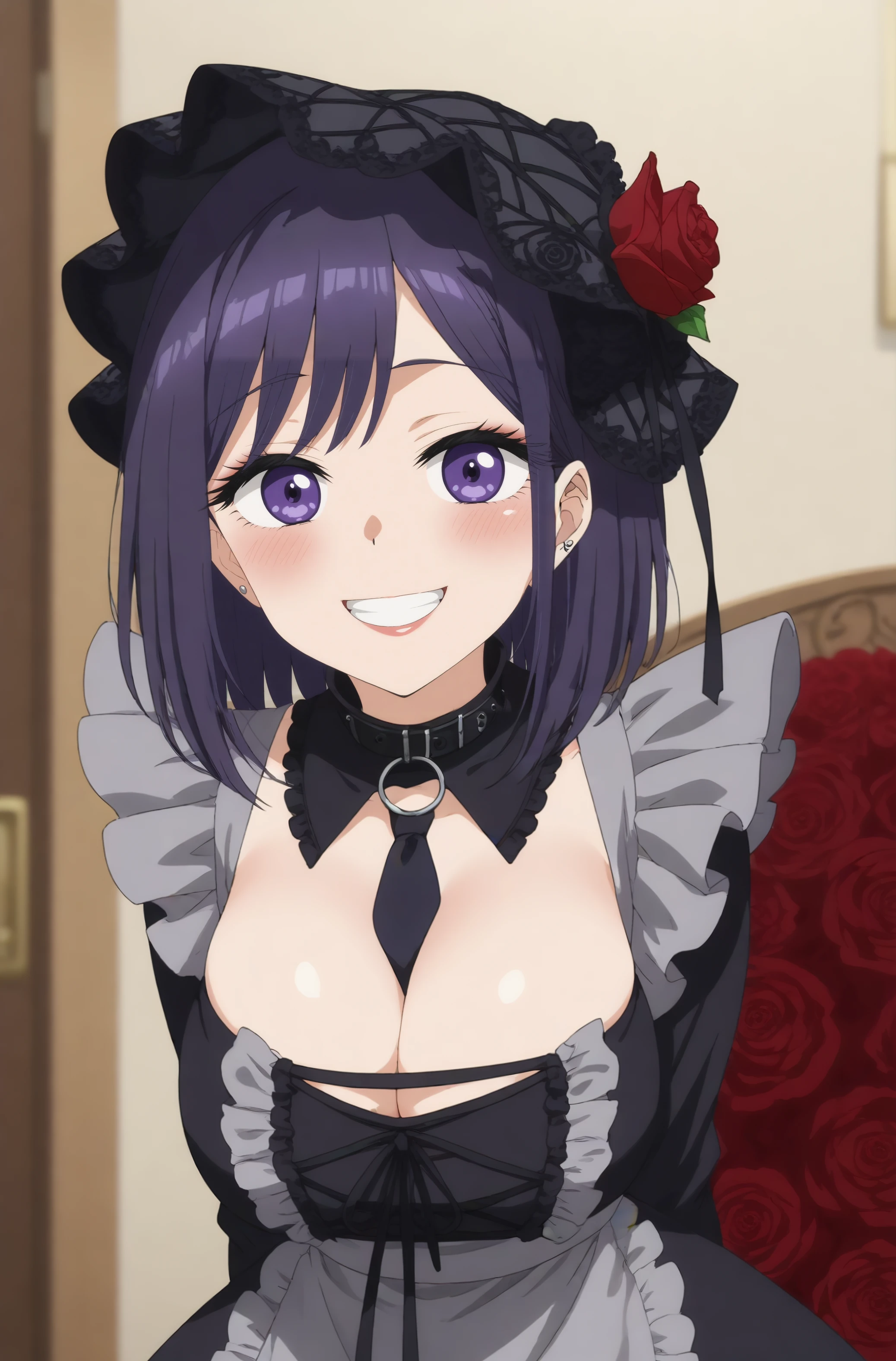 3 : marin kitagawa,gothic lolita,rose bonnet, black collar,purple eyes,rose,wig,purple hair,black dress,bonnet,ring,cleavage,cosplay,flower, gothic fashion, frills, necktie,black dress, apron
