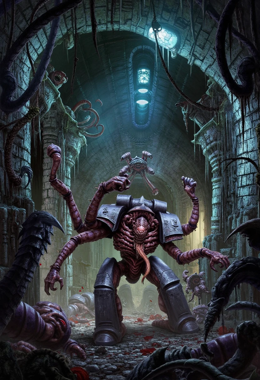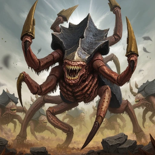 The Ordo Xenos has developed an advanced imaging AI, codenamed "Hive Mind's Mirror," specifically designed to generate accurate visual representations of the Tyranid species across their various bioforms. This technology utilizes deep learning algorithms to reconstruct potential appearances and battle scenarios involving Tyranid swarms, from the smallest Ripper to the towering Hierophant bio-titan.