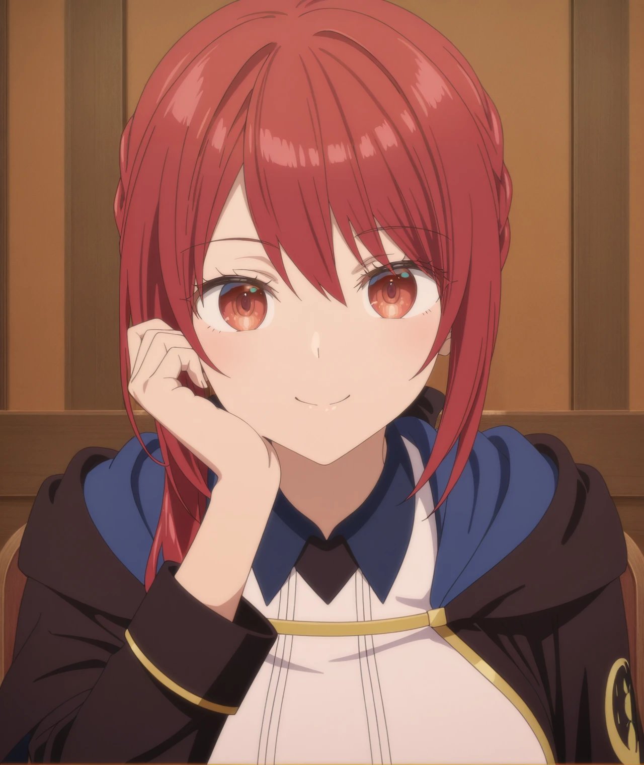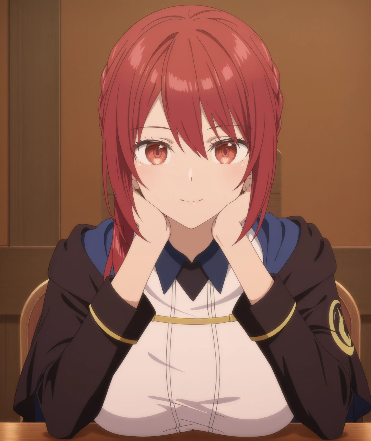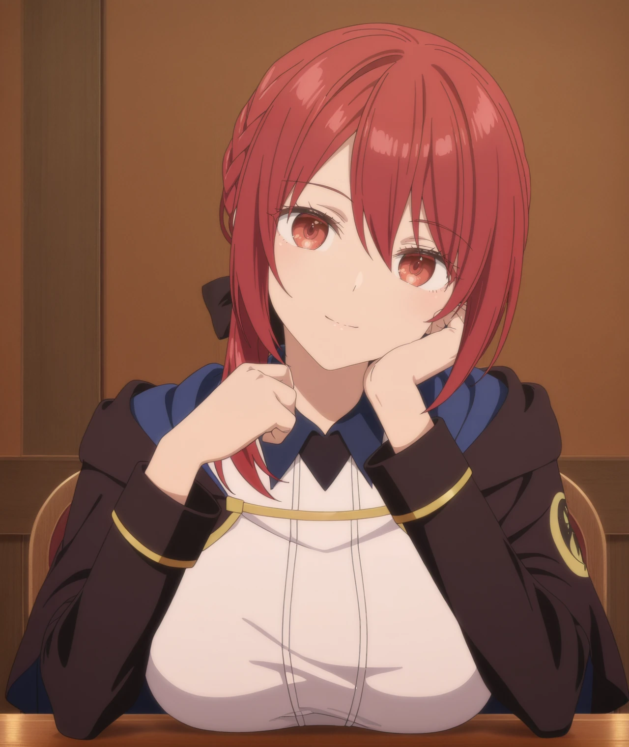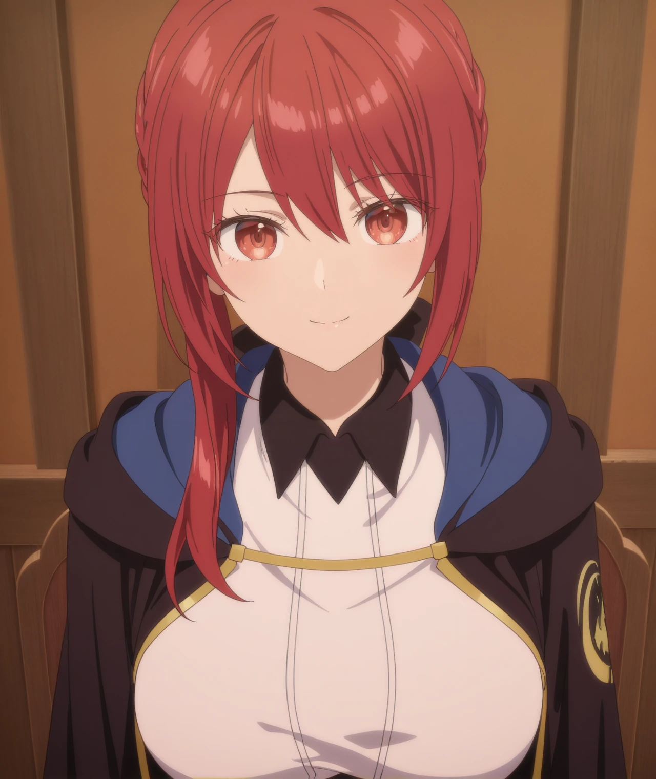 selma claudel, 1girl, long hair, red hair, braid, red eyes