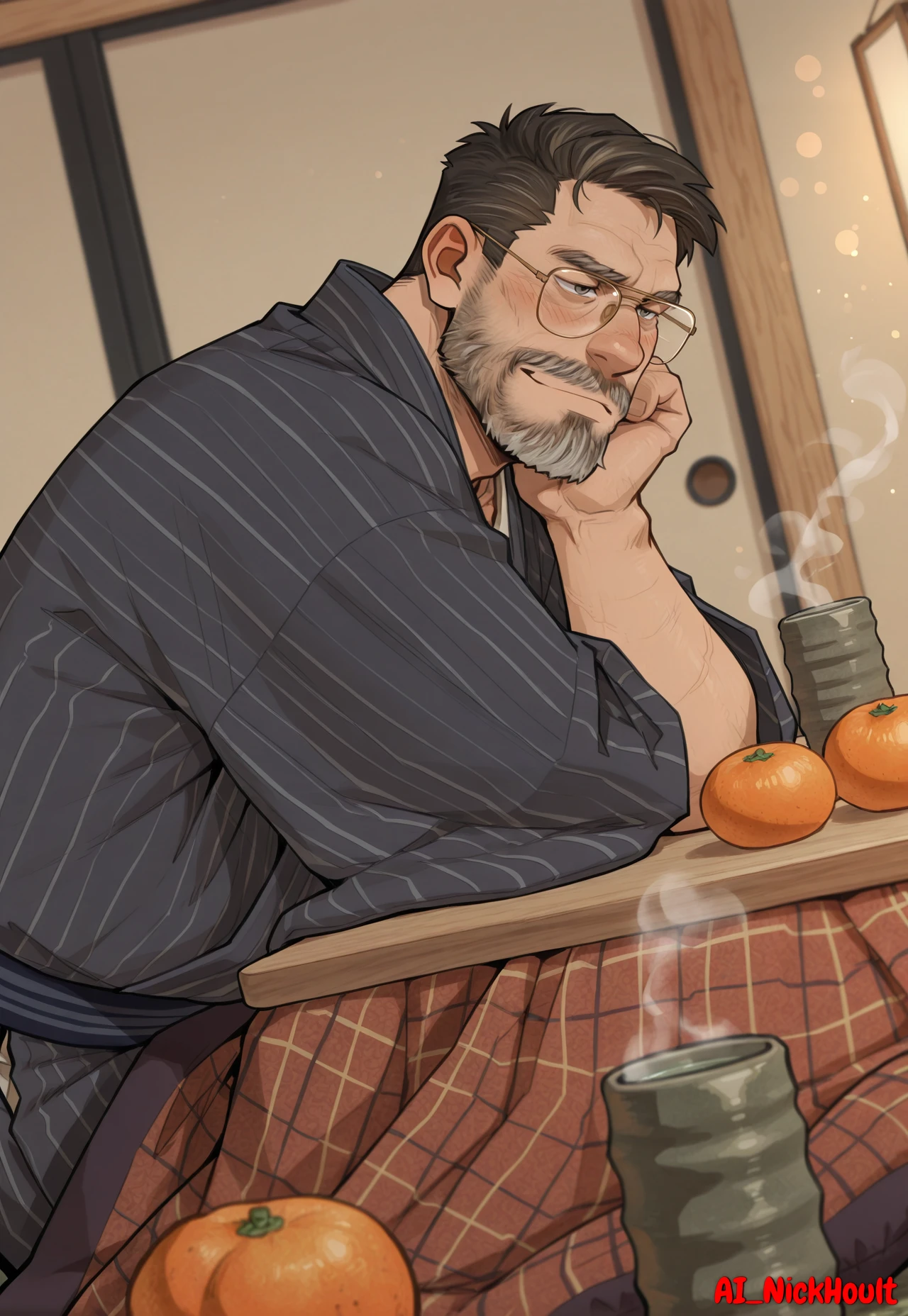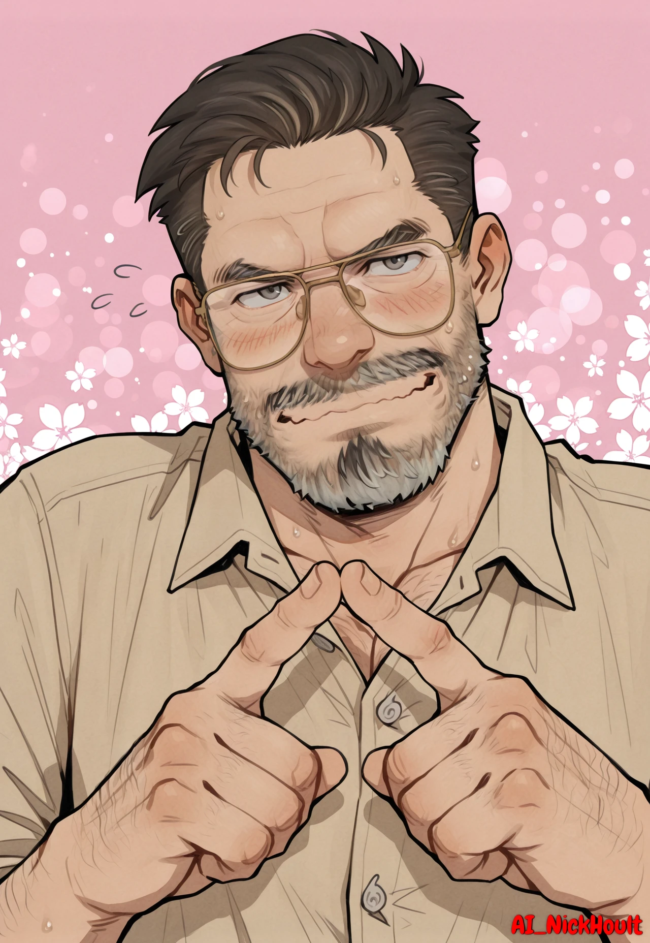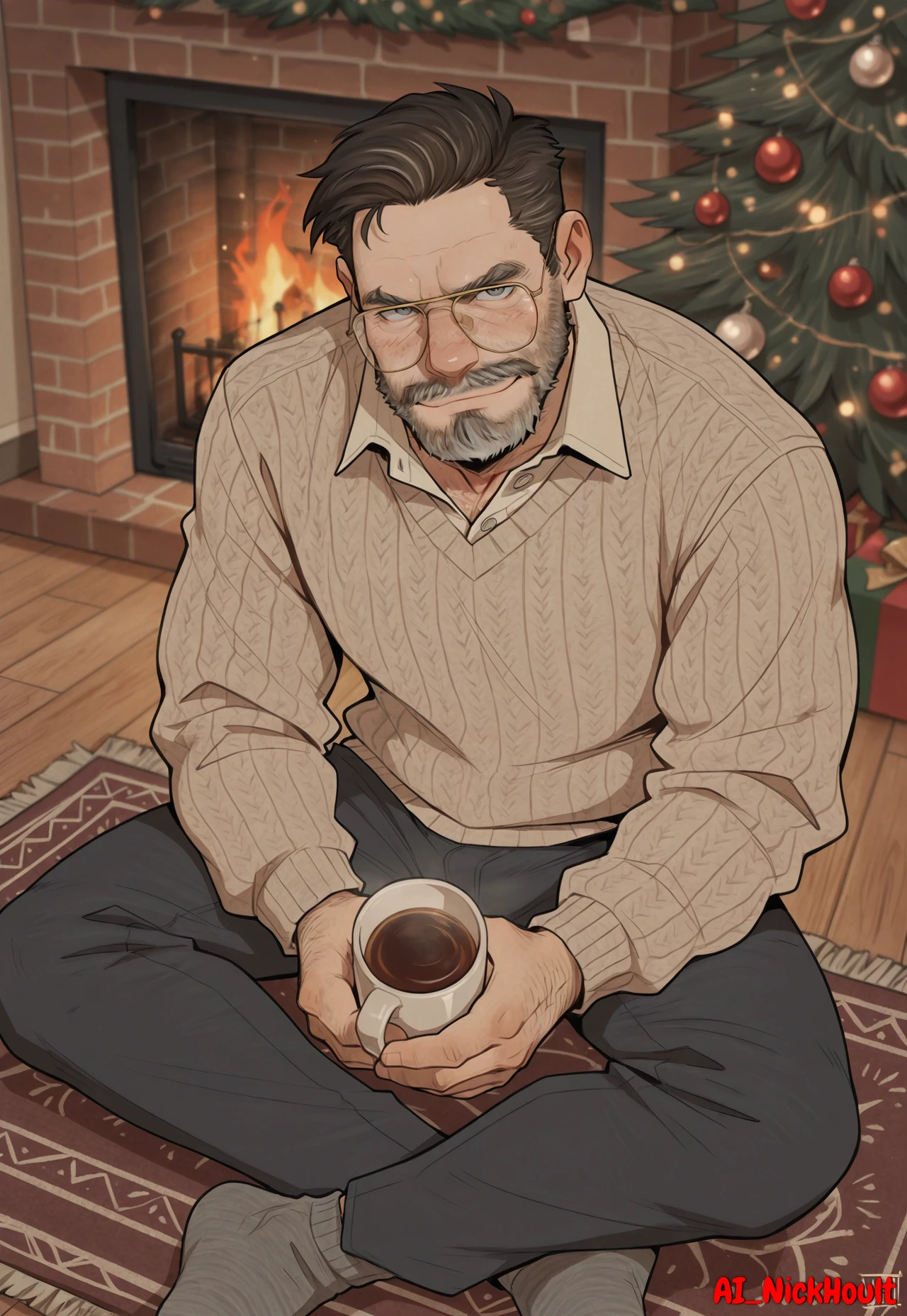 William, mature man, gray eyes, short hair, brown facial hair, graying facial hair, brown hair, Graying hair roots,