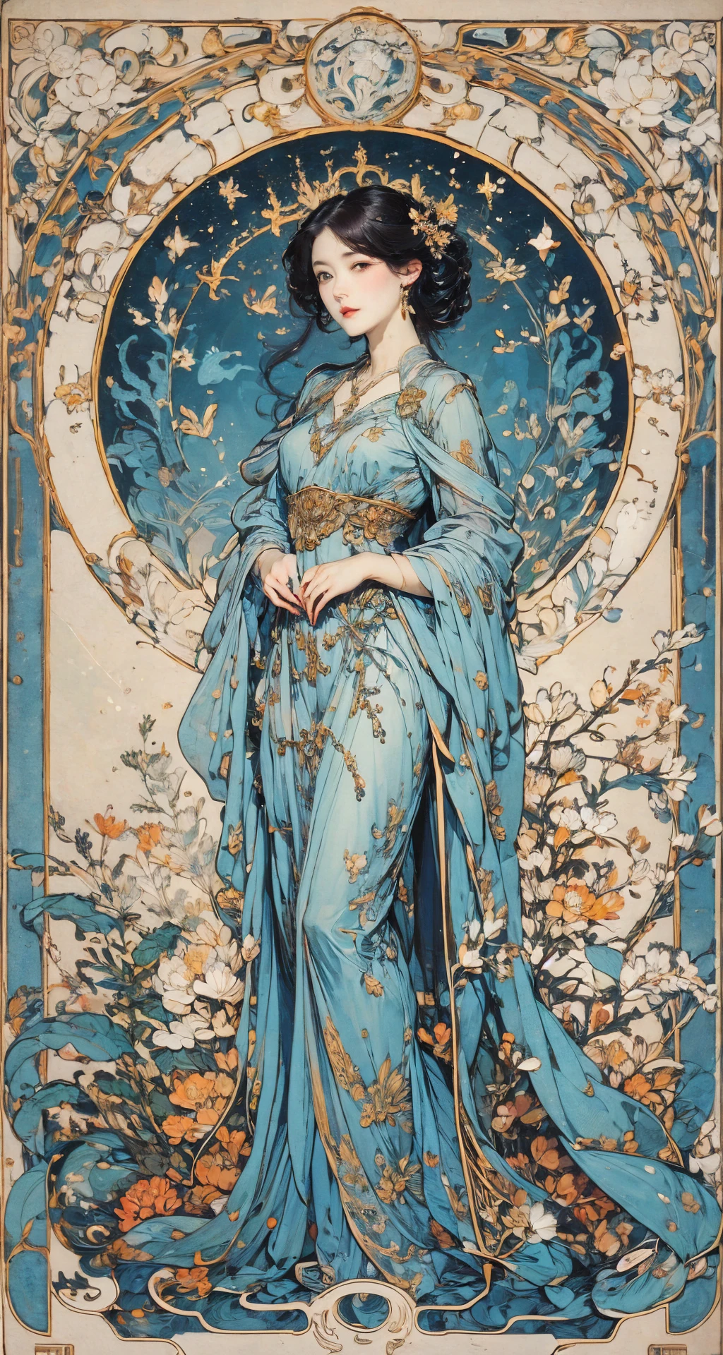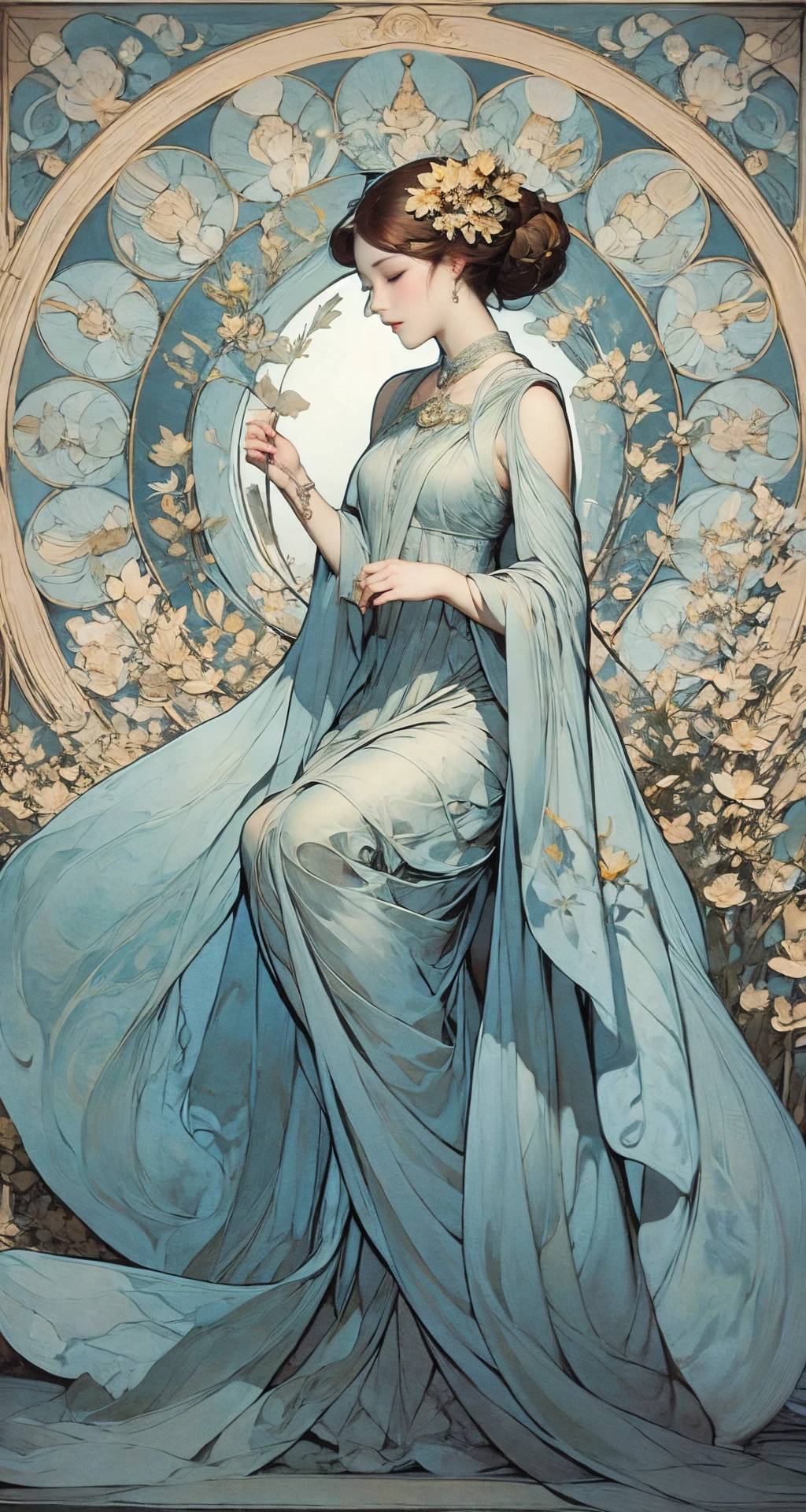 lora搭配建议:<塔罗牌tarot_2.0>, <淡色盛宴2.0_v2.0>, 以及其他淡雅类型的国风Lora(例如:<暗香_v1.0><国风.大漆_v1.0>等),国风Lora都挺适合跟<Mucha穆夏/插画>进行搭配的!(每个搭配lora权重都为0.3~0.4,搭配的Lora数量不要太多。)