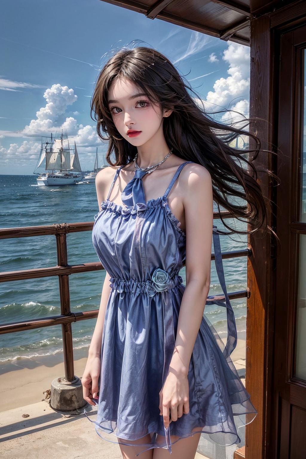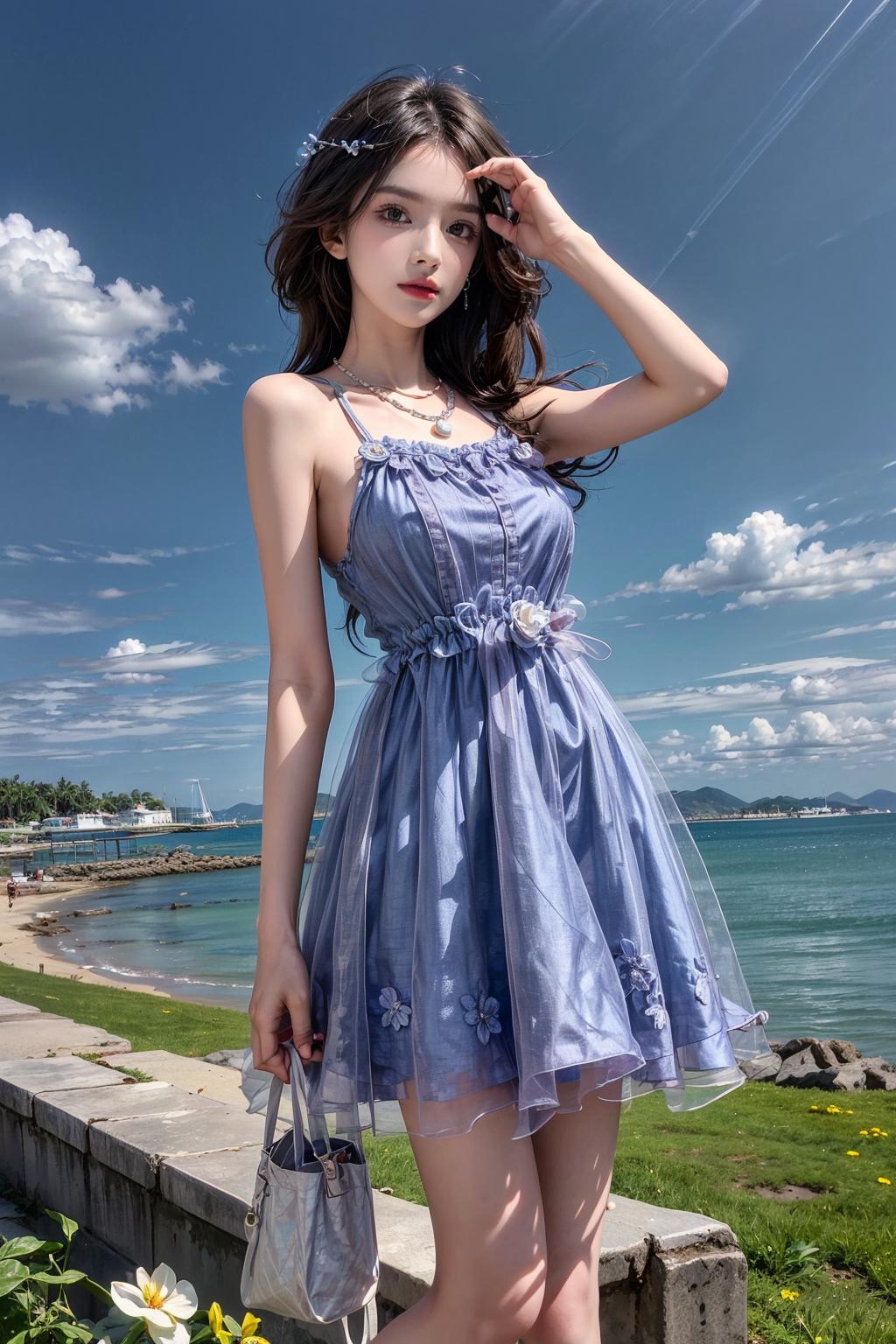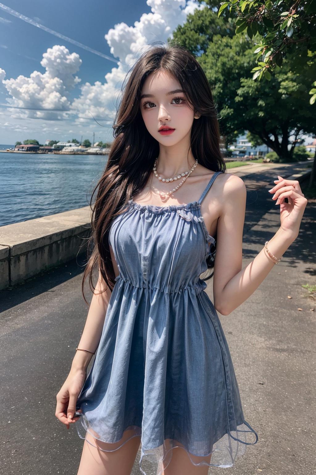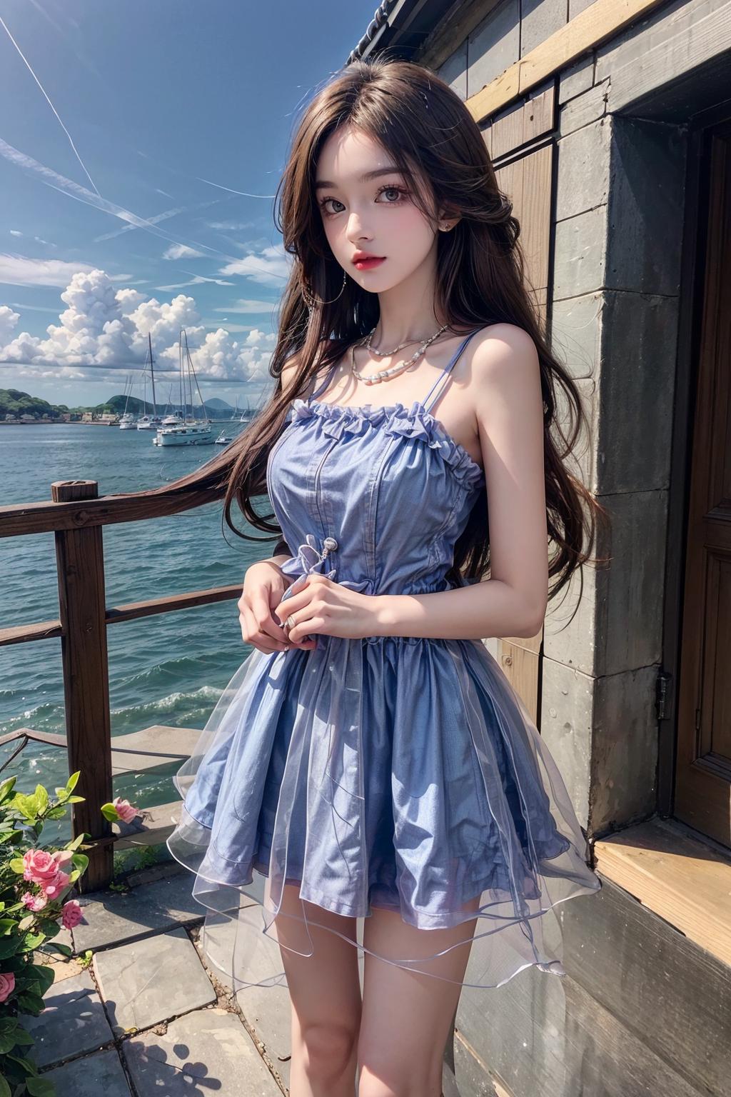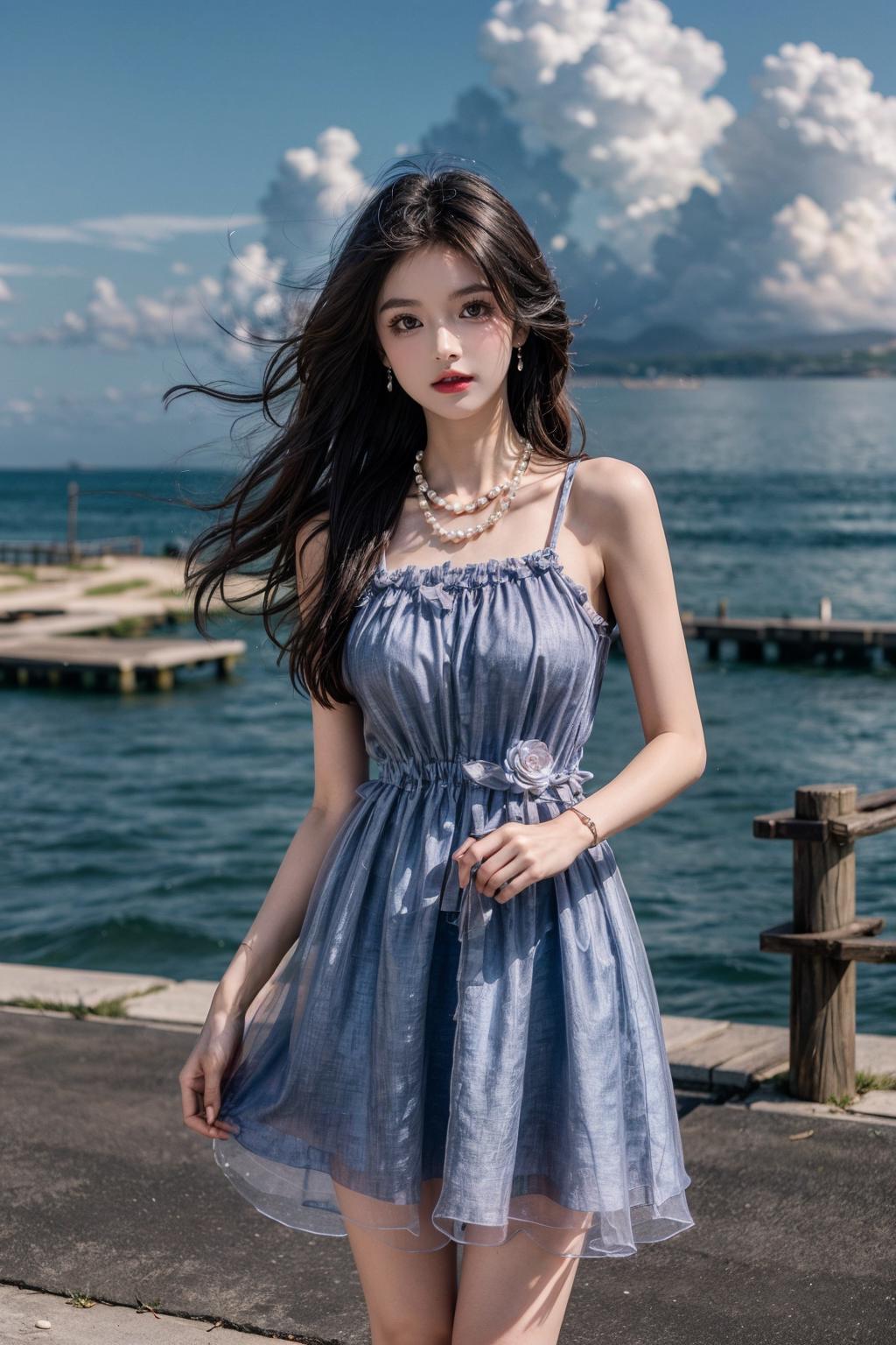 Sweet girl clothes2,pearl necklace,blue dress,flower,