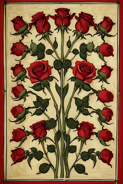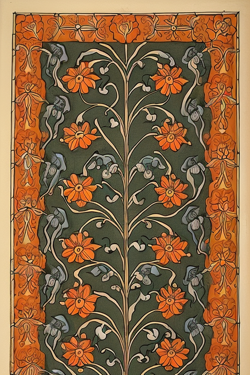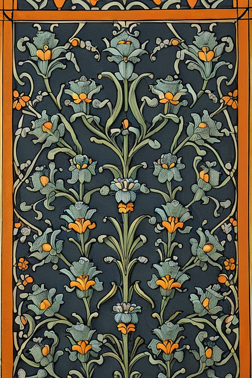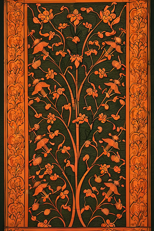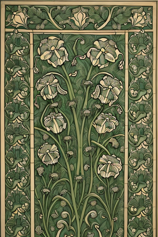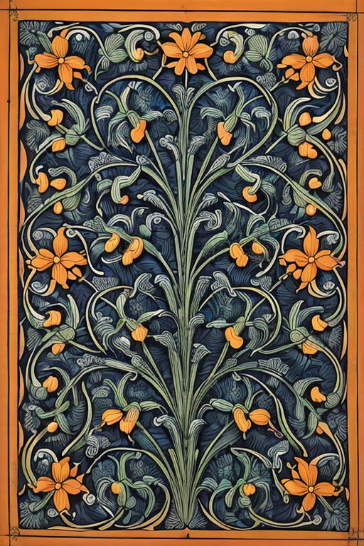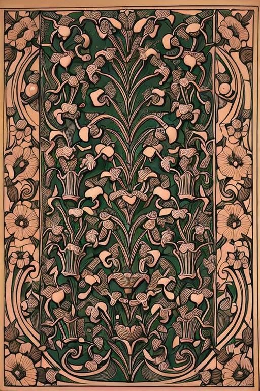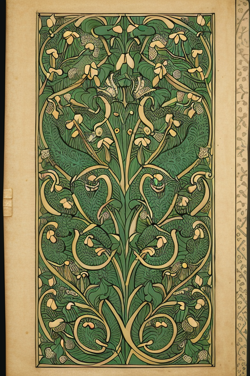 This embedding is based on 30 patterns from La plante et ses applications ornementales — cooked for a total of 300 steps on base SD 1.5: 16 vectors per token, a 0.004 learning rate, a batch size of 6, and 5 gradient steps. It can make some quite lovely patterns; with the right weights, you can also push them in a more naturalistic or abstract direction.