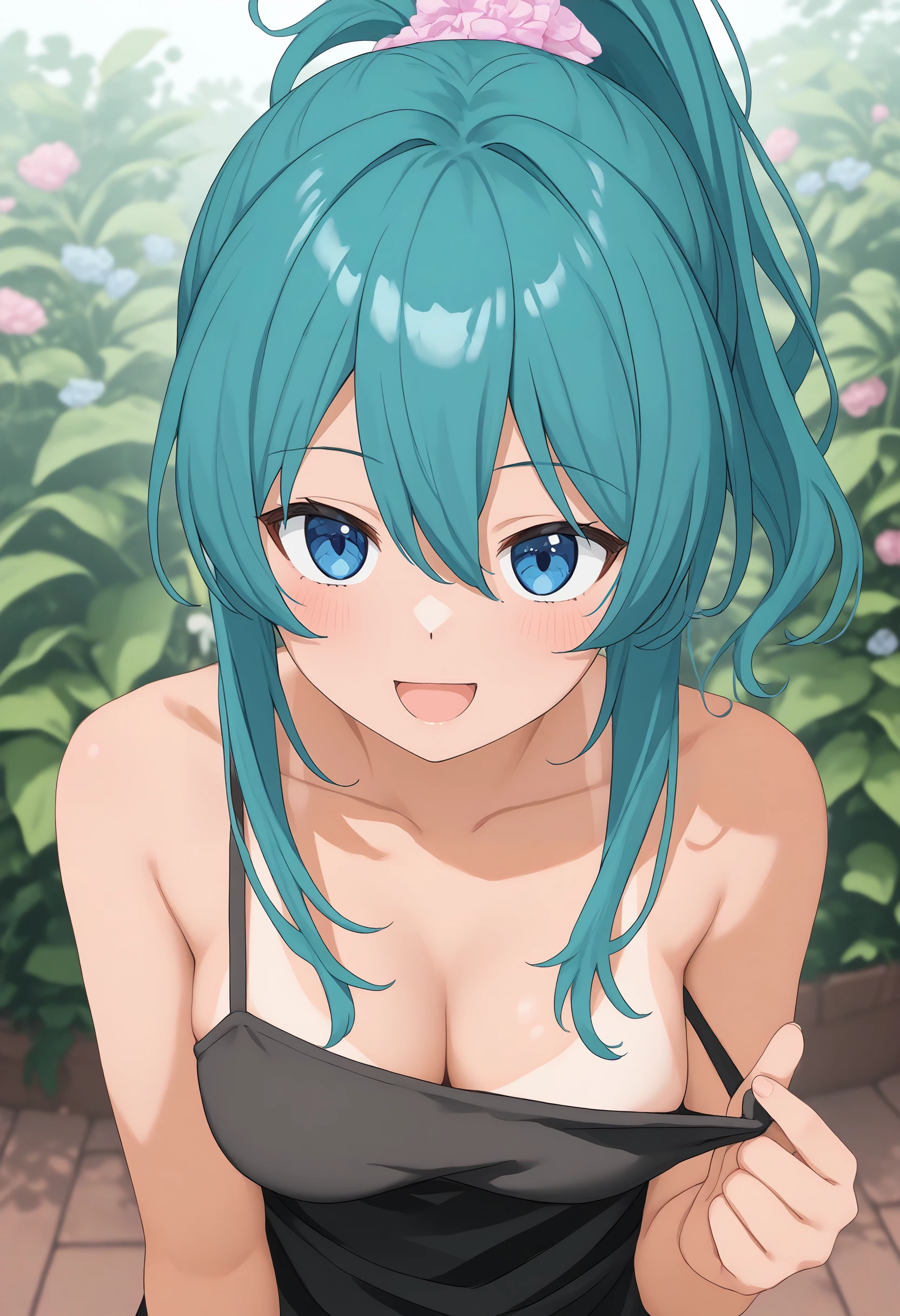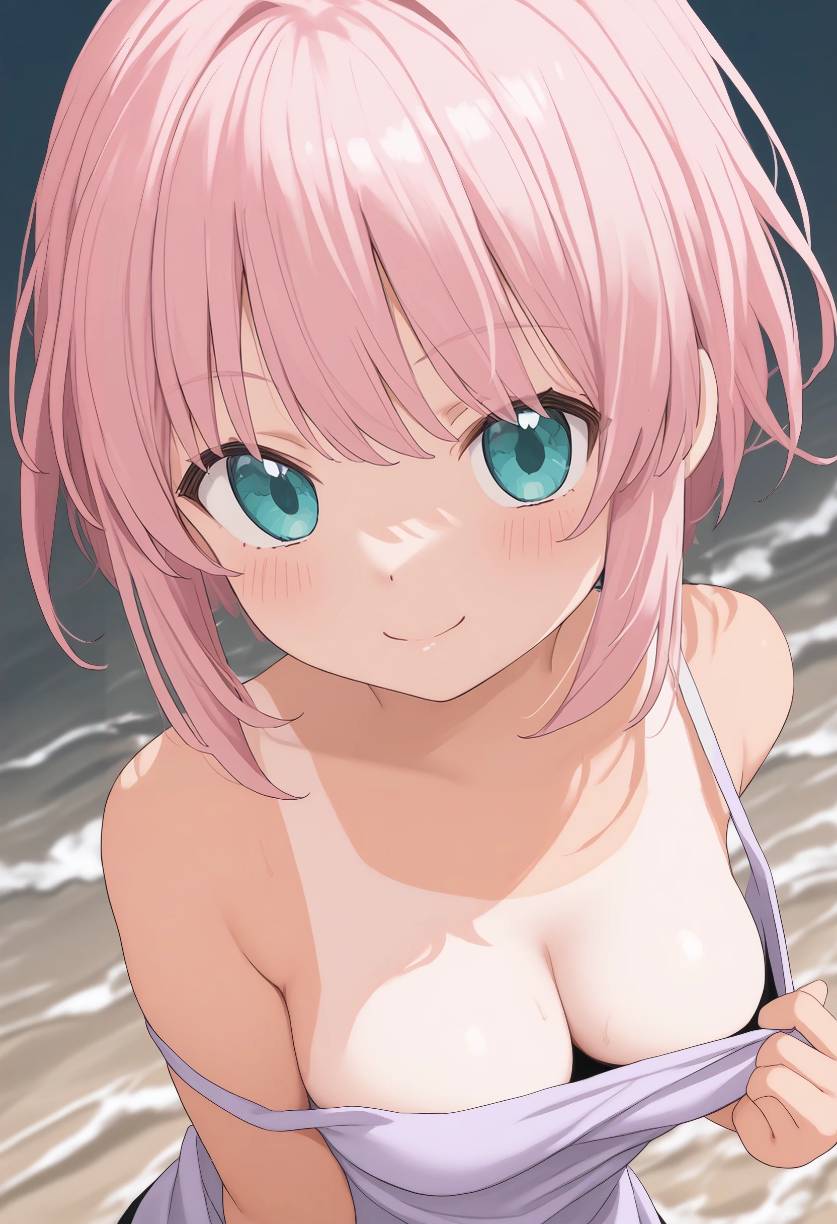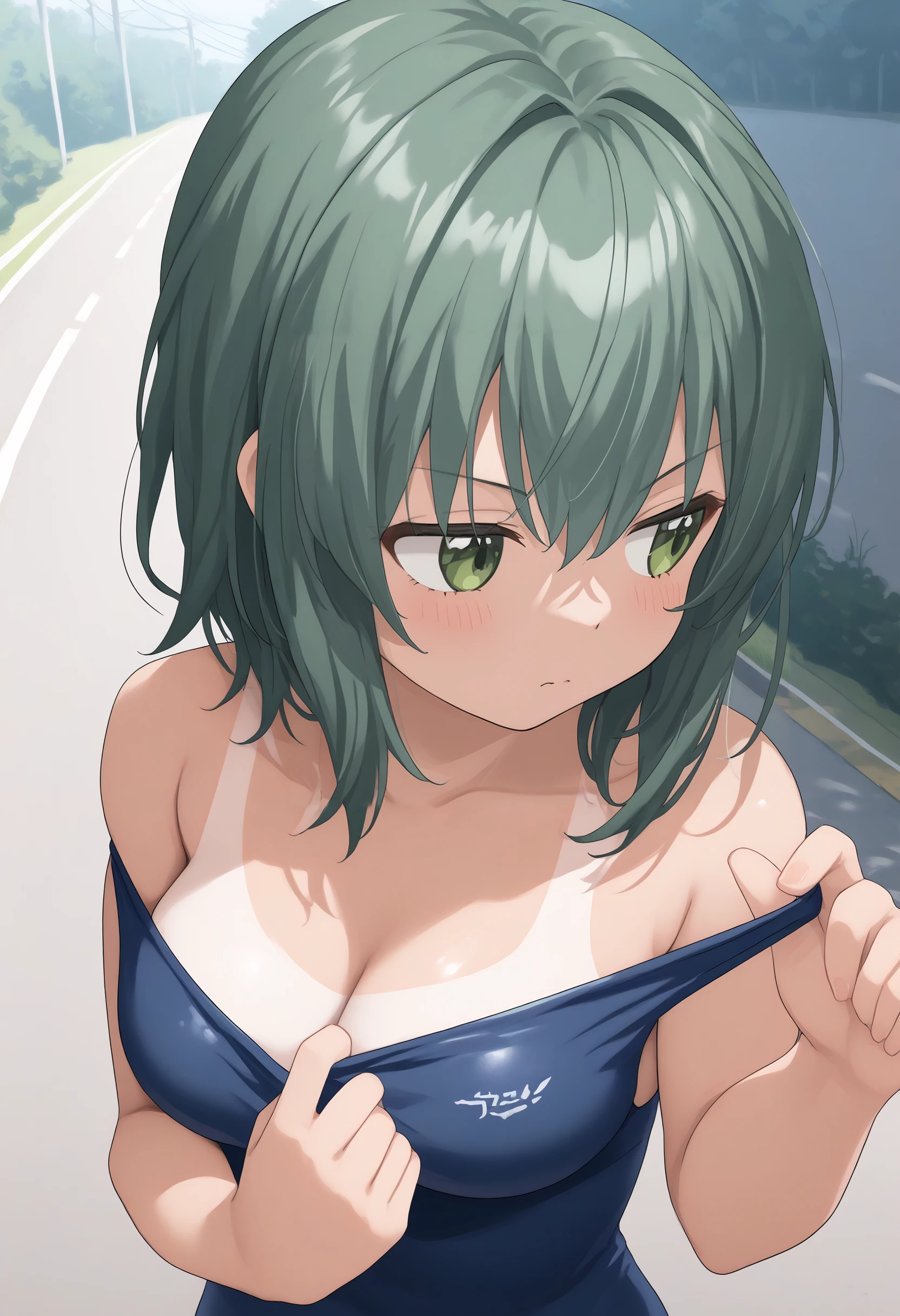 スクール水着が一番動作し易いですが他の水着や私服でも一応効きます。 clothes pull, bare shoulders, pulled by self, swimsuit pull 辺りから適当に入れてください。たいていは肩紐や胸元を引っ張りますが、時々下半身もめくって見せてくれます。