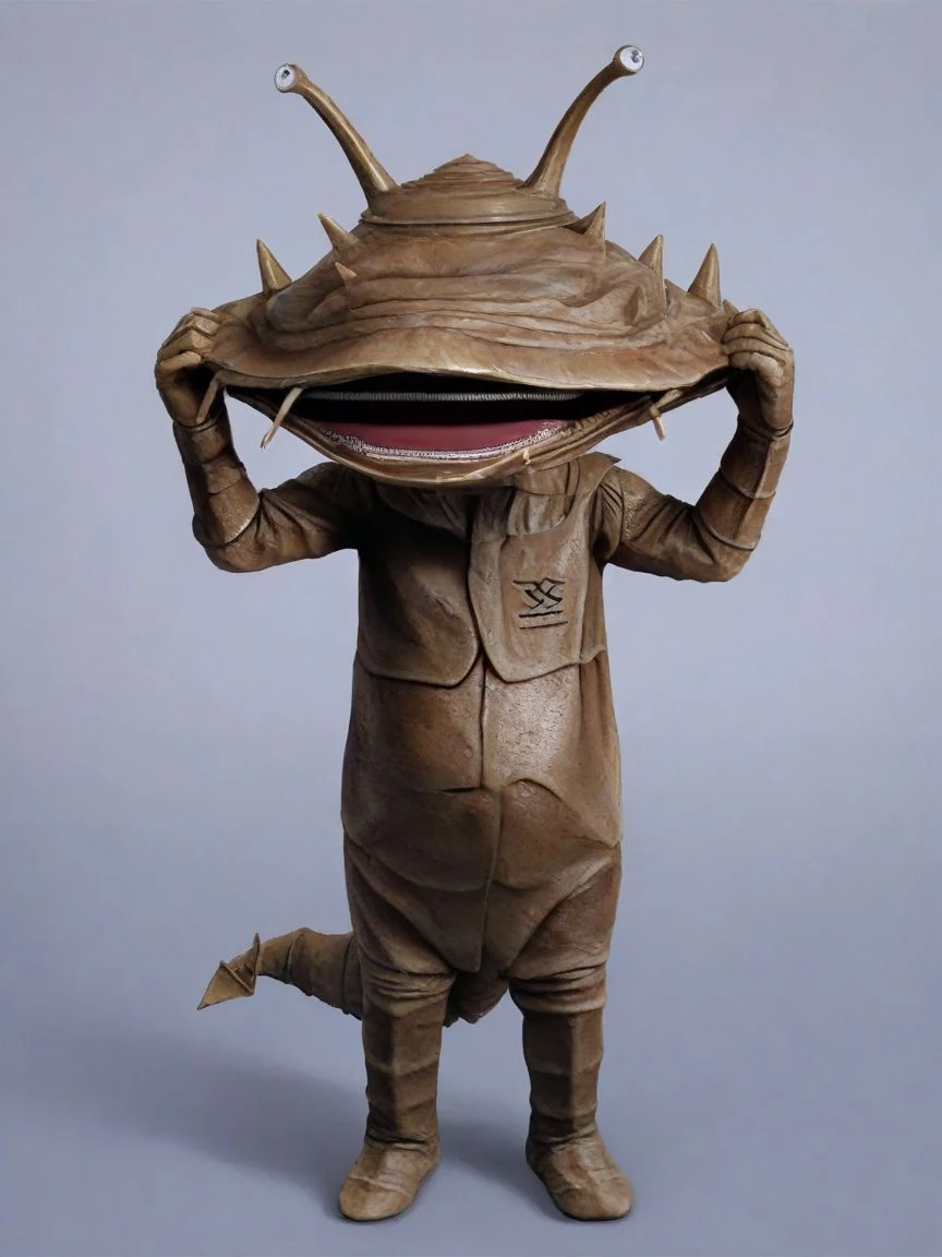 Unlike many other monsters that are aliens or prehistoric creatures, Kanegon was originally a greedy young boy named Kane-o. He was obsessed with collecting coins and saving money. One day, he found a mysterious vibrating cocoon that promised to fulfill his wish for wealth. After being pulled into the cocoon, he transformed into the monster Kanegon.