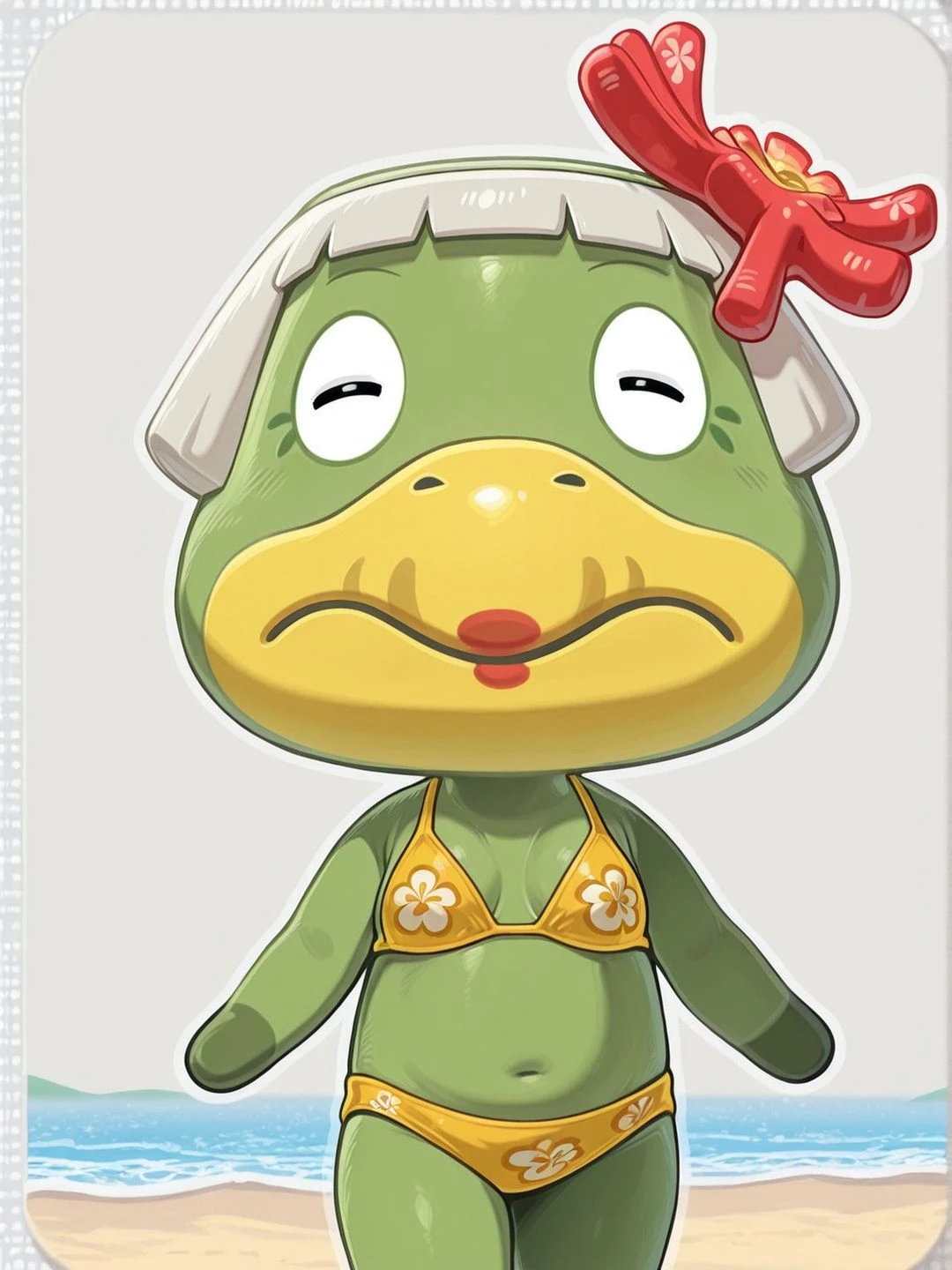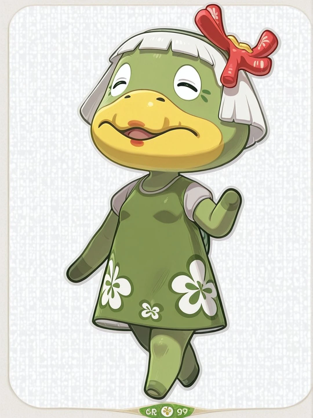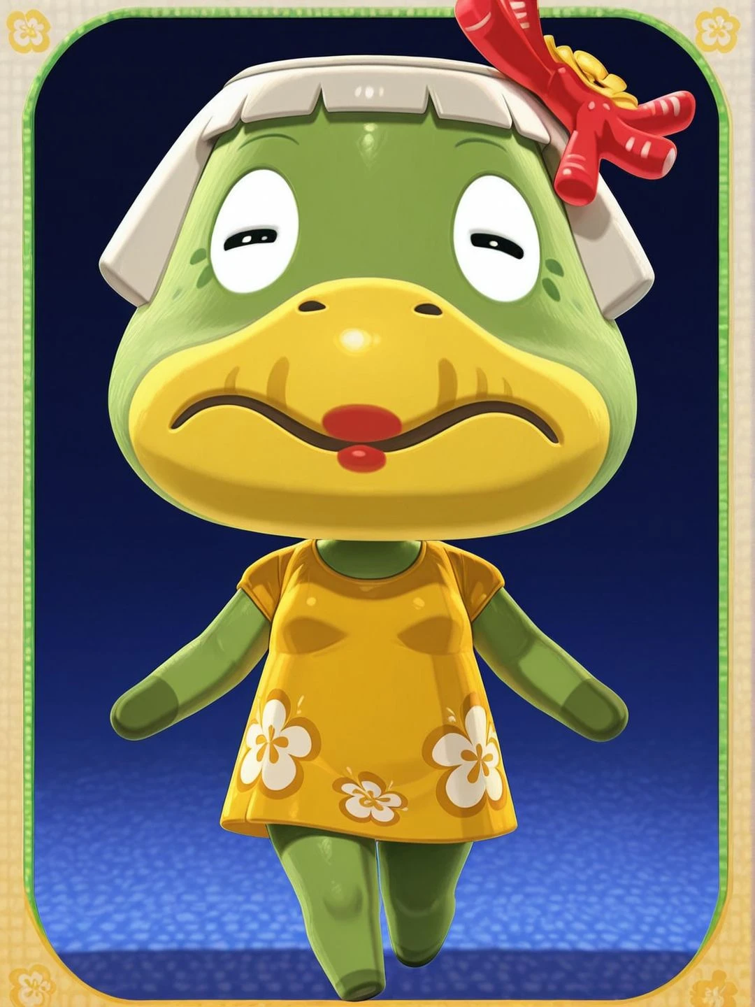 A senior/elderly Kappa (japanese folkore creature) from the game Animal Crossing.