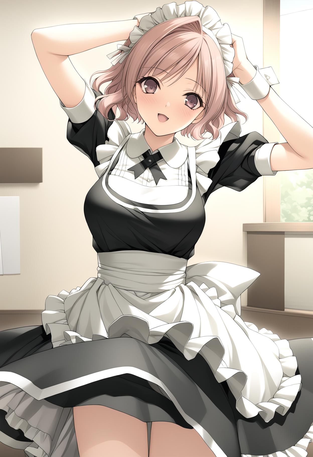maid, maid headdress, apron, wrist cuffs, short sleeves,