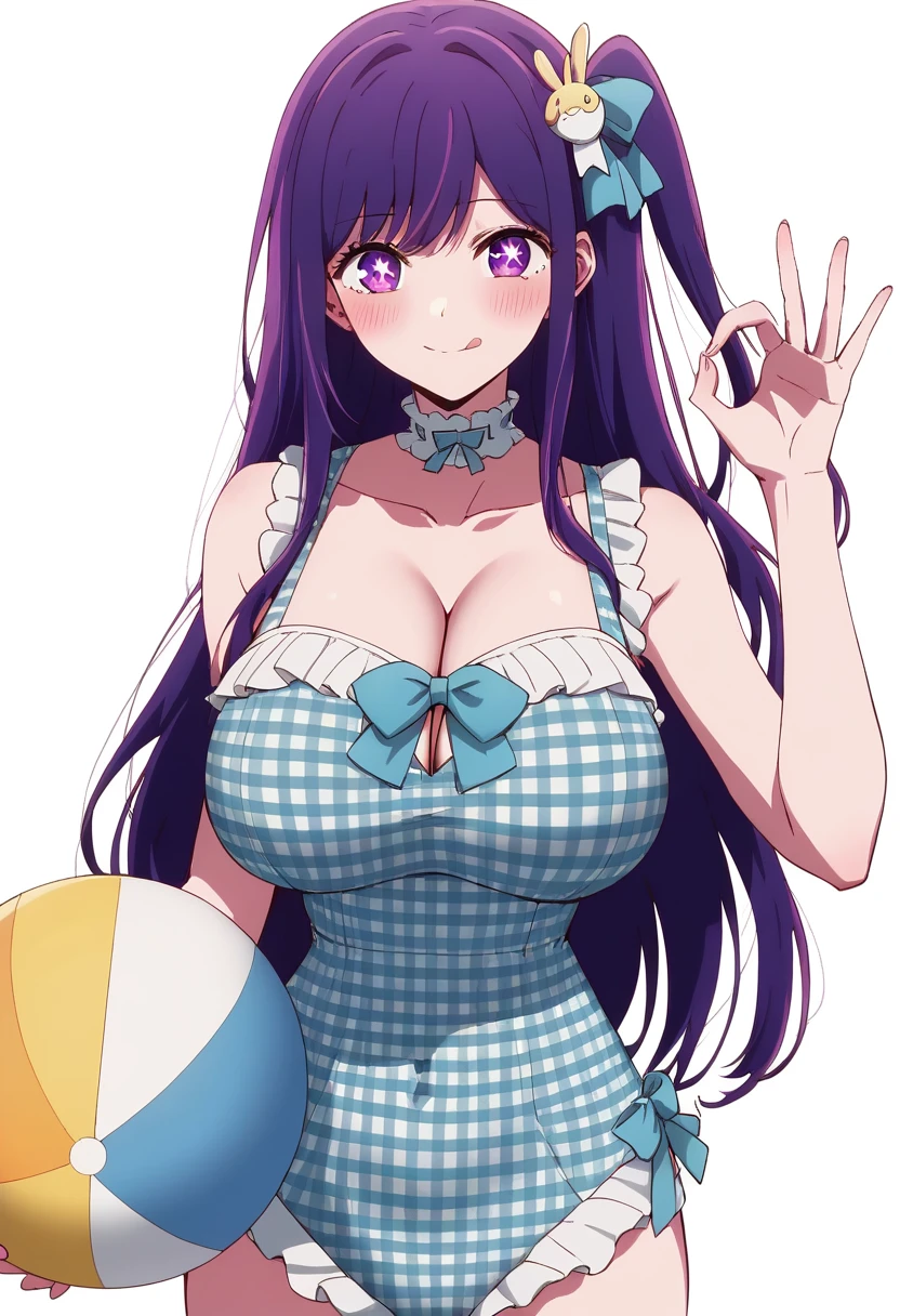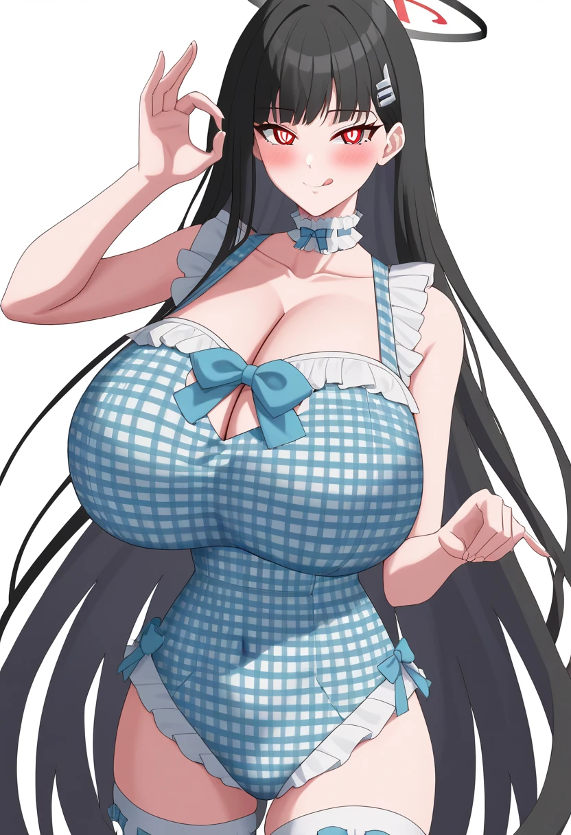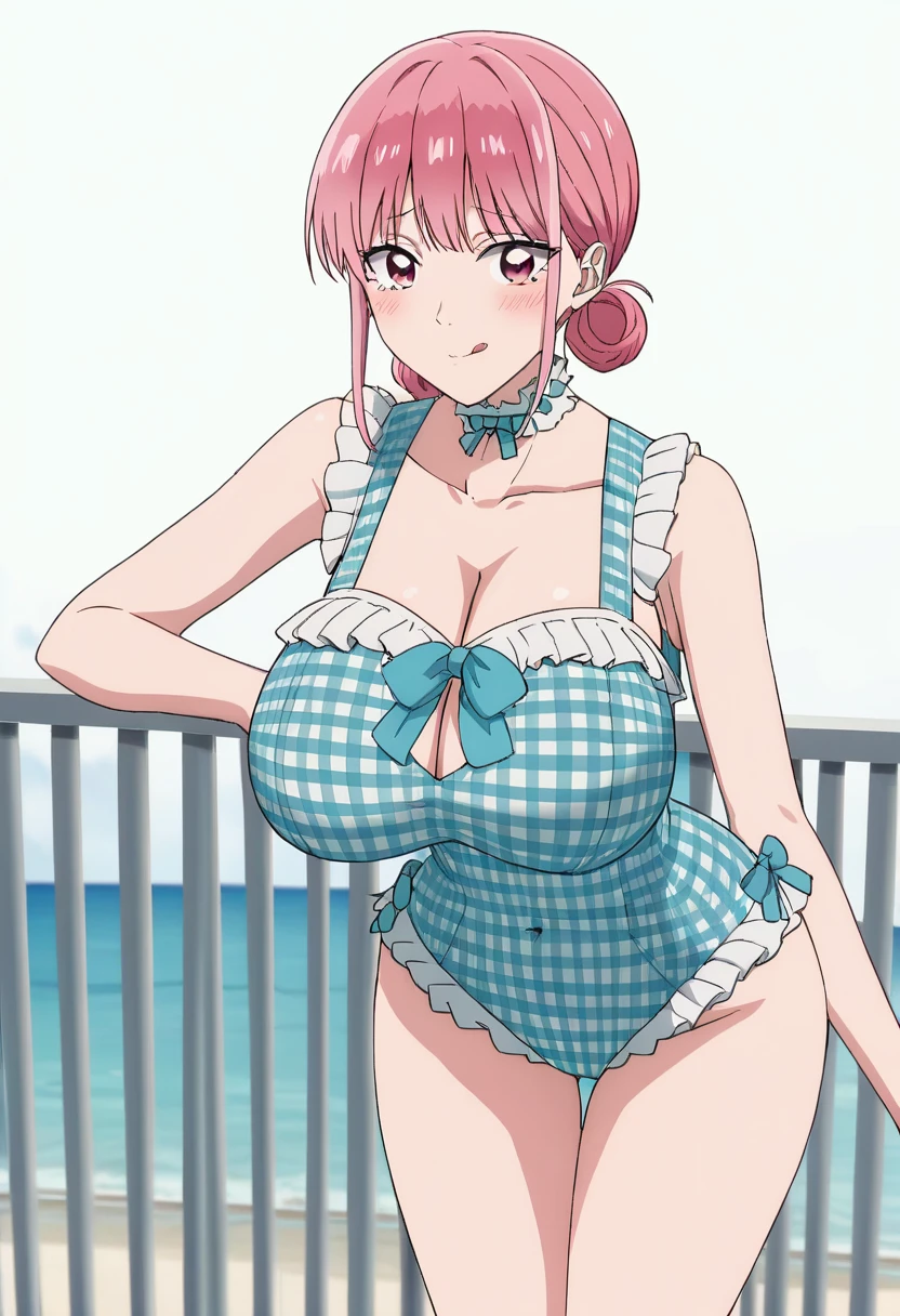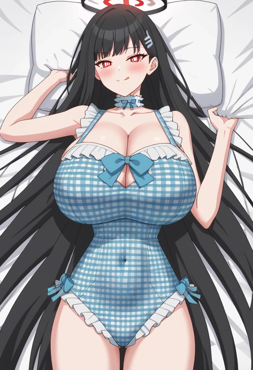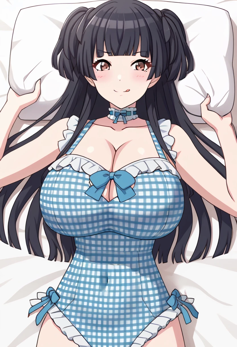 <lora:alin_ahicw_hsuits_sumiim24:0.8>, swimsuit,blue one-piece swimsuit,frilled swimsuit,casual one-piece swimsuit, bow,blue bow,frills,plaid, blue choker,frilled choker, cleavage,collarbone,covered navel,