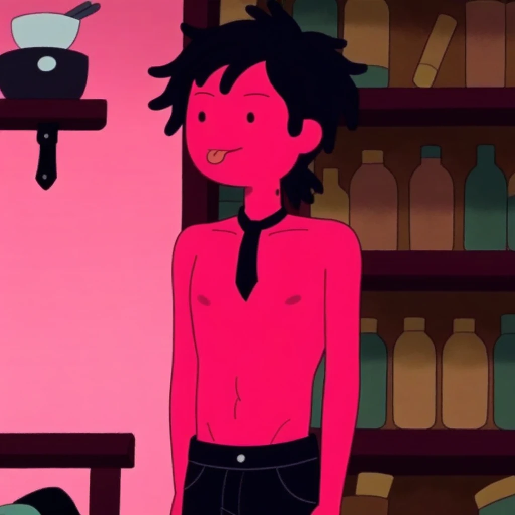 Dark skin, red jacket, white undershirt, Marshall Lee