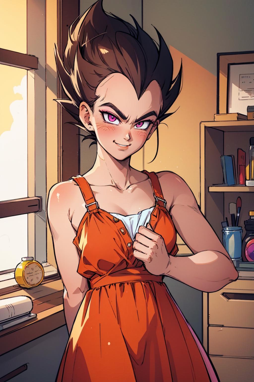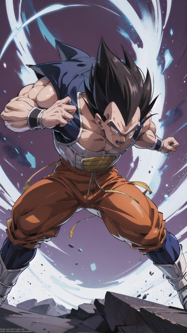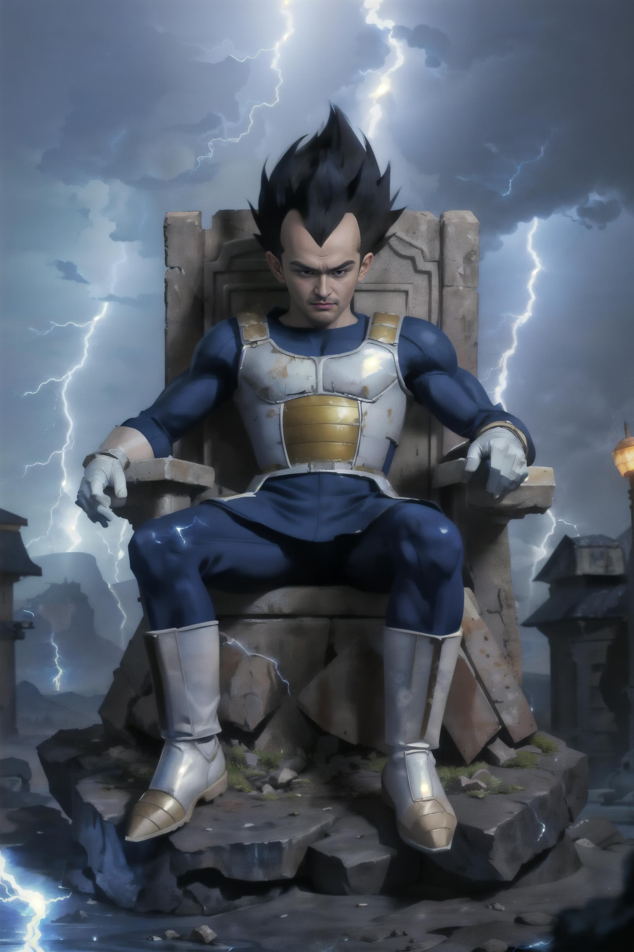 Trigger + Usual Appearance: vegeta, black spiked hair, black eyes