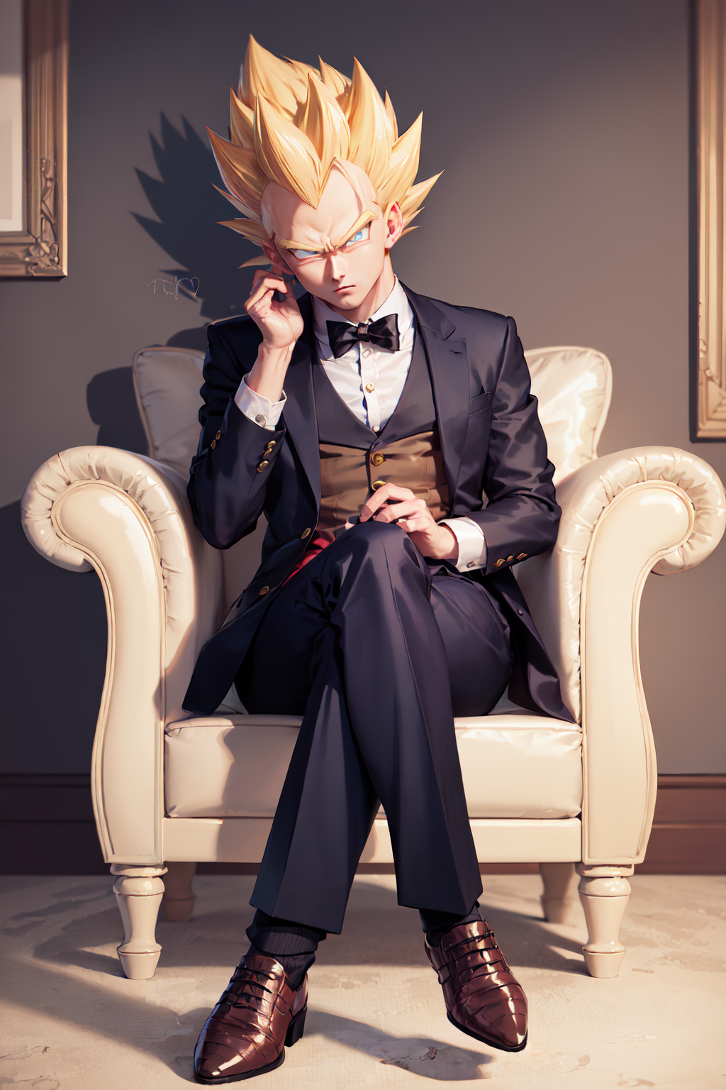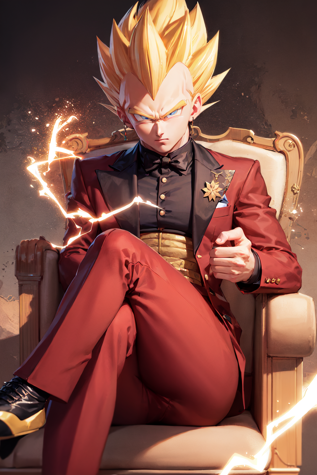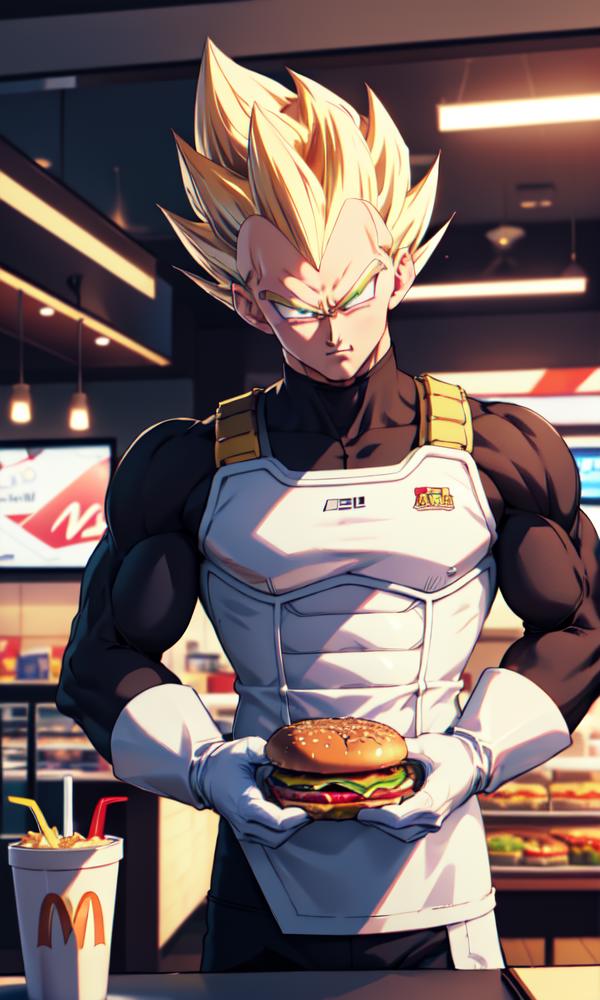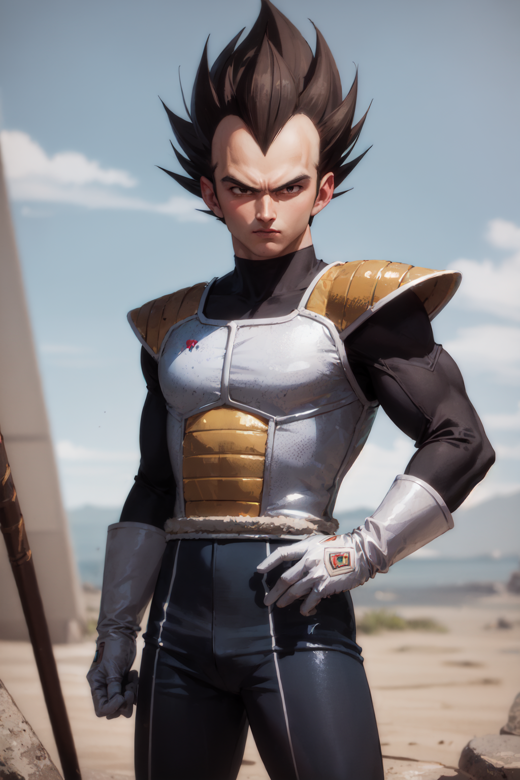 Trigger + Usual Appearance: vegeta, black spiked hair, black eyes