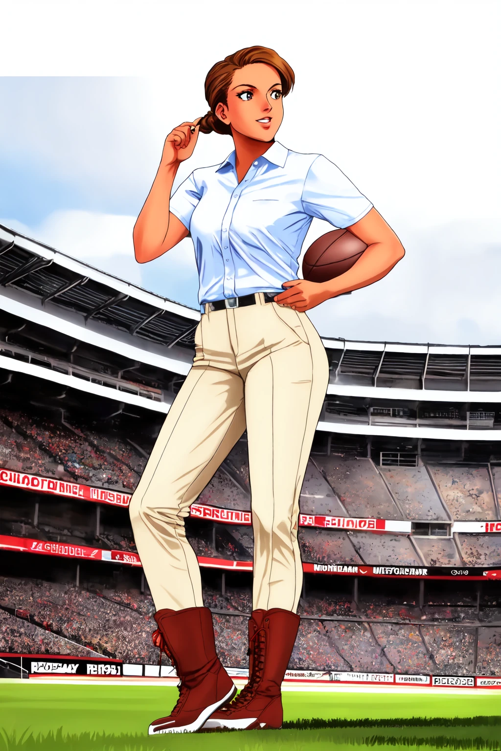 short hair,brown hair,hair bun,collared shirt