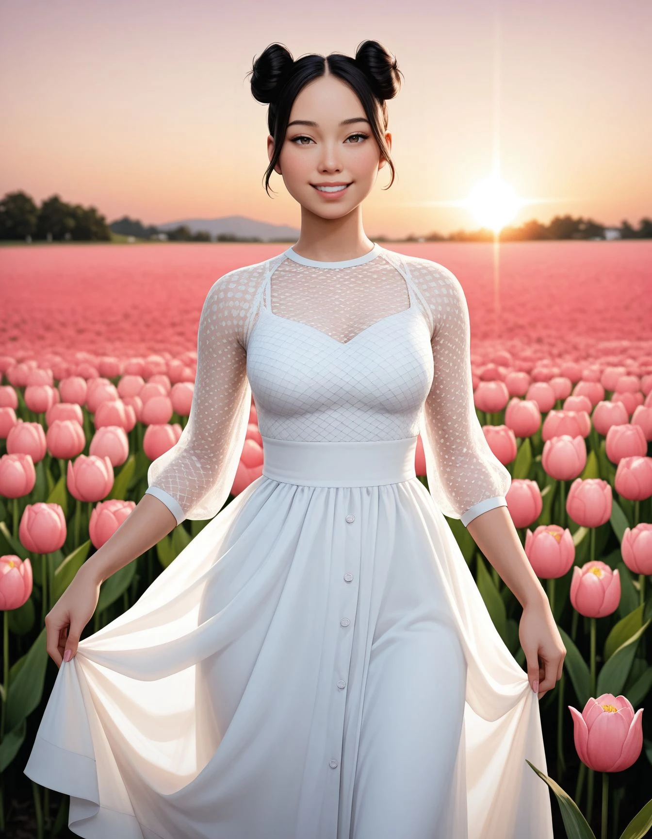DI2Amy, double buns, brown eyes, black hair