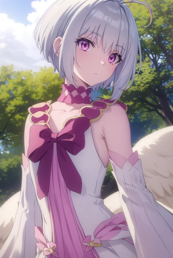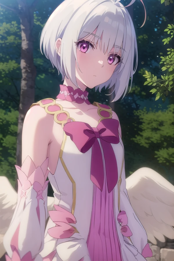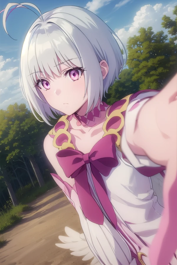 fitoria, short hair, white hair, (pink eyes:1.3), ahoge, antenna hair,