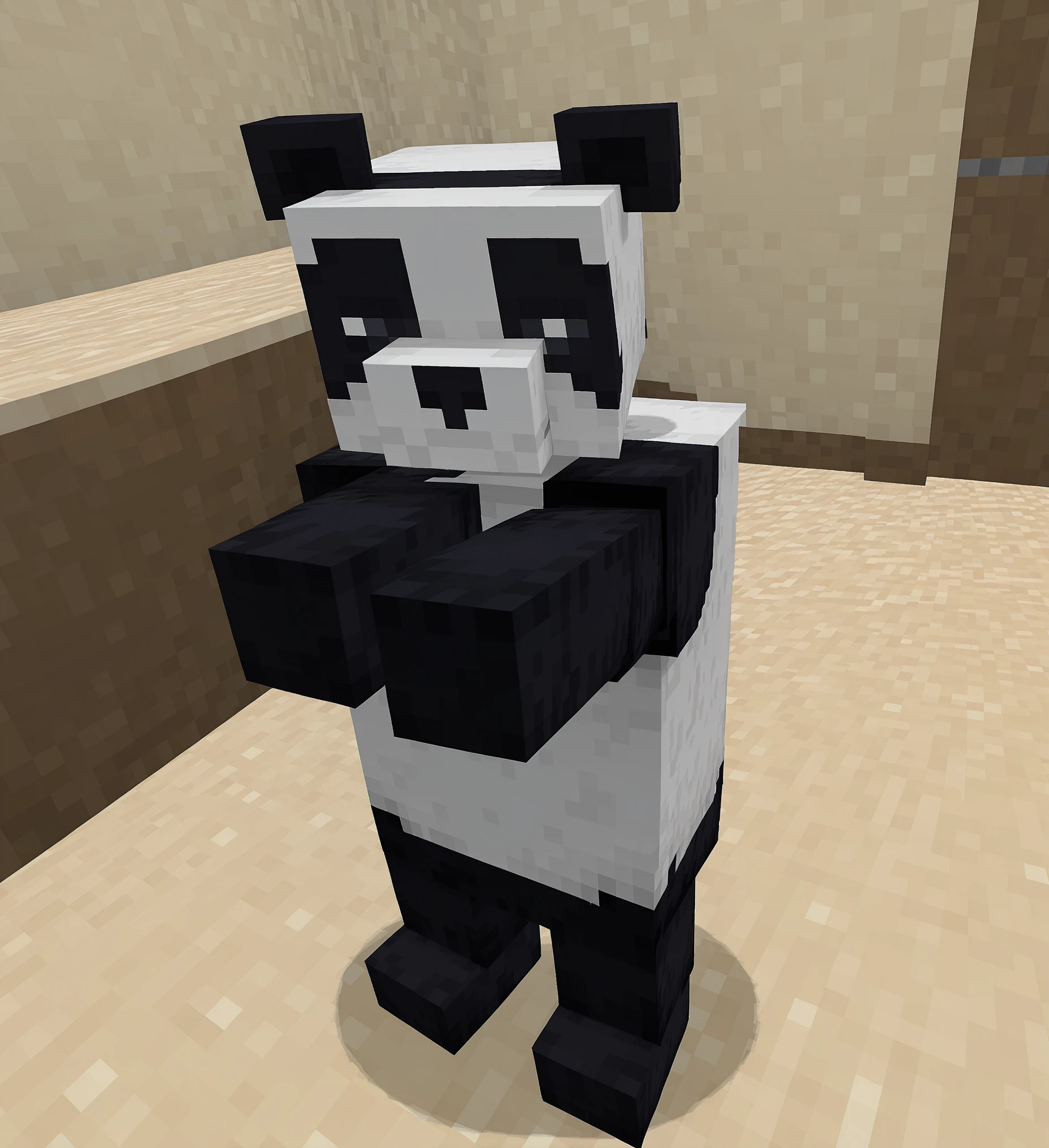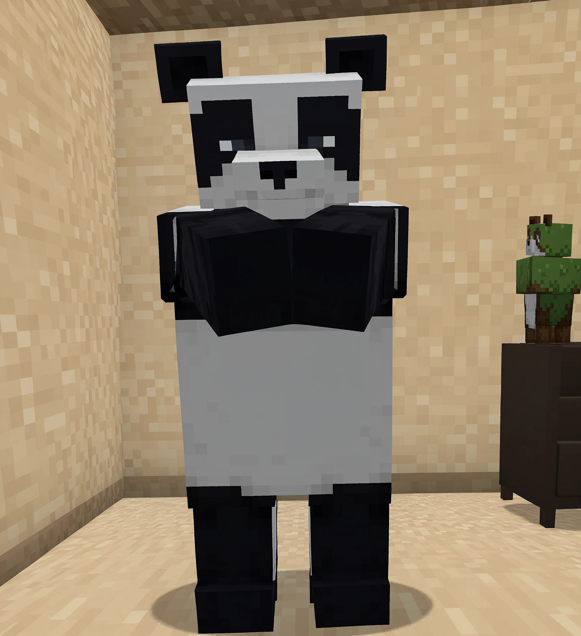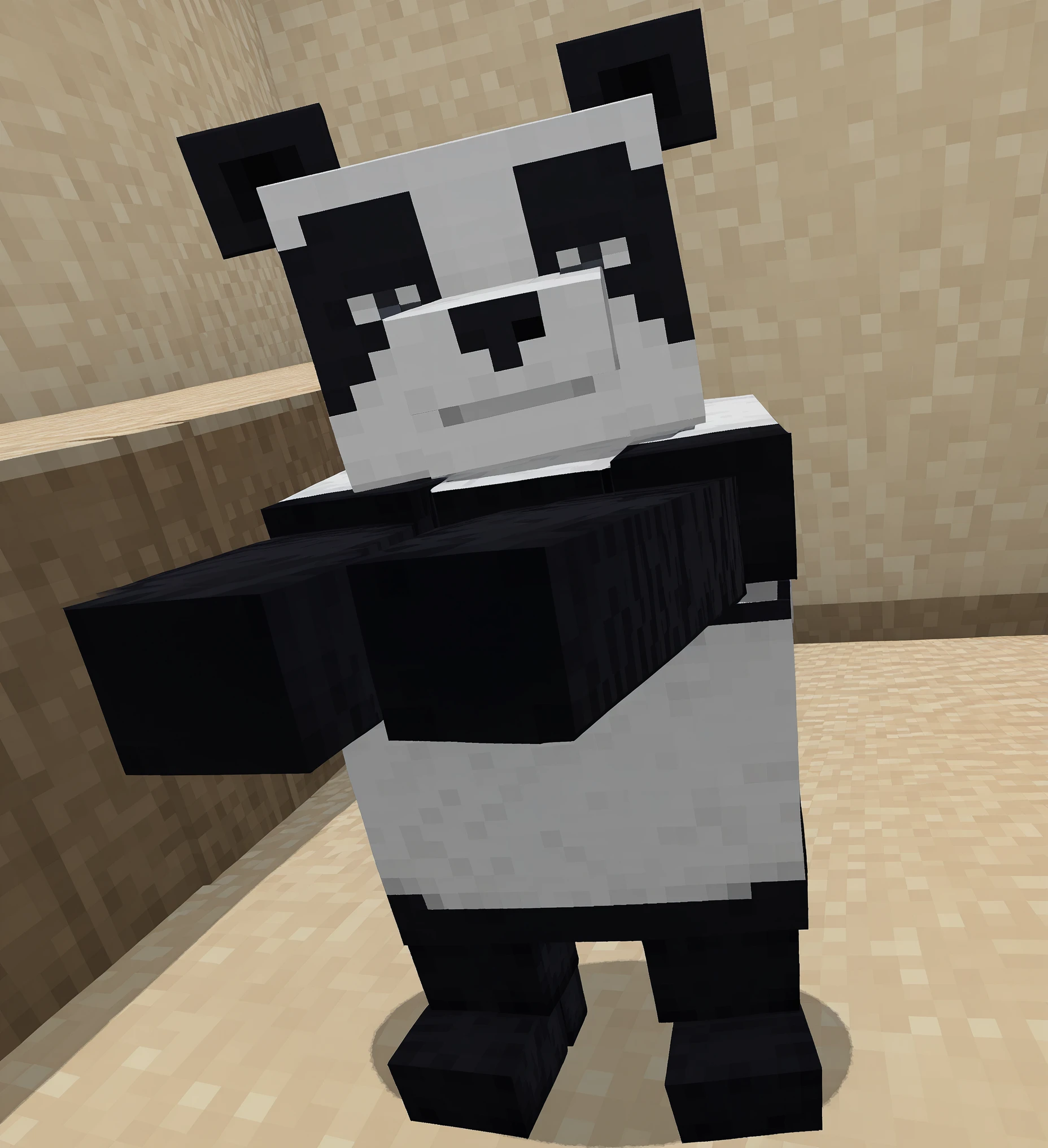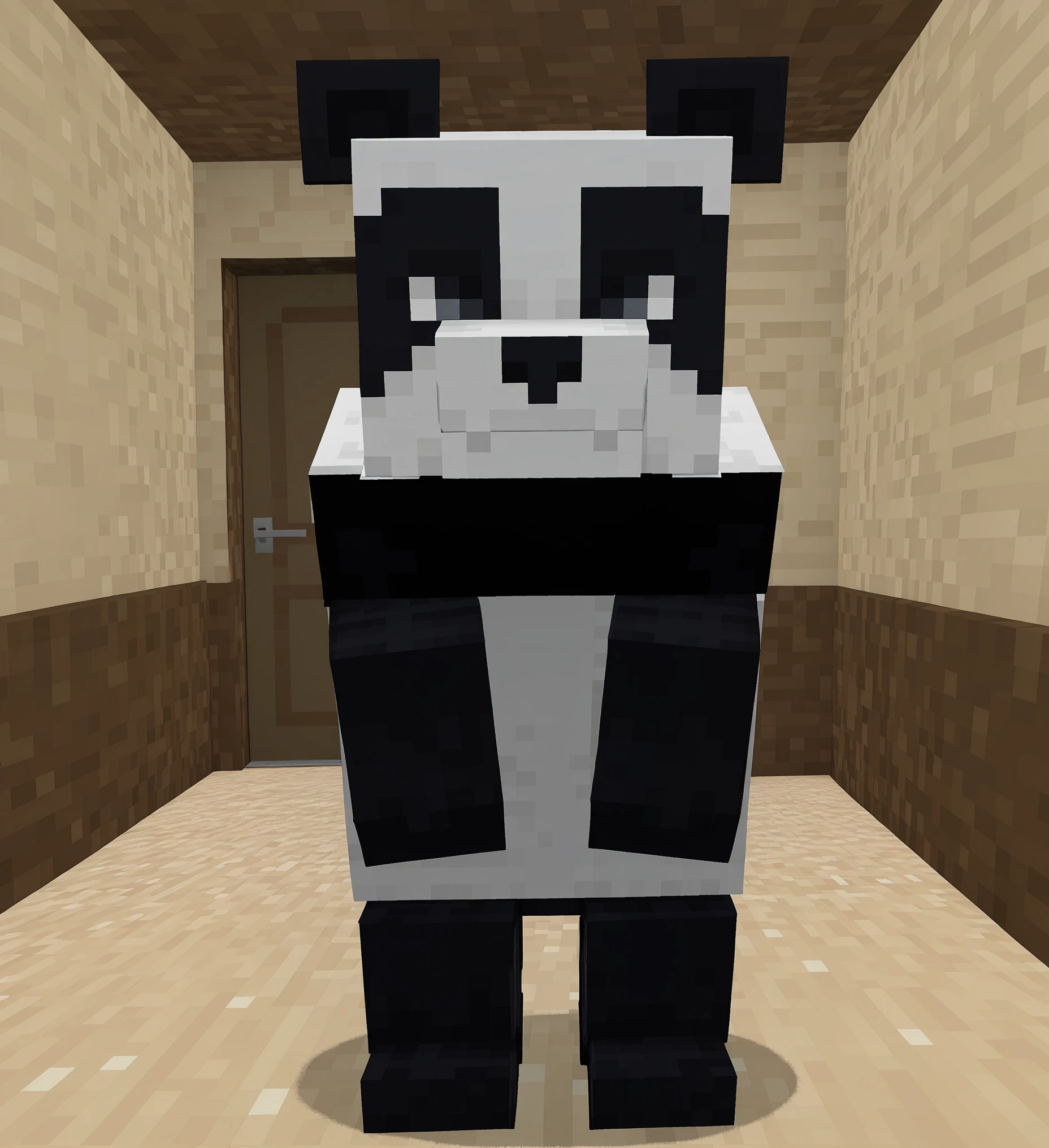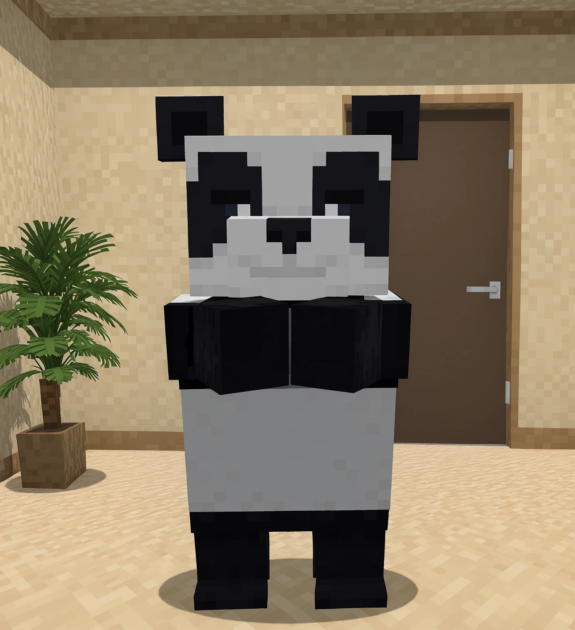 MinecraftPanda, 3d, giant panda, black and white fur, two-tone fur, panda ears, panda nose, white sclera, gray eyes, panda tail