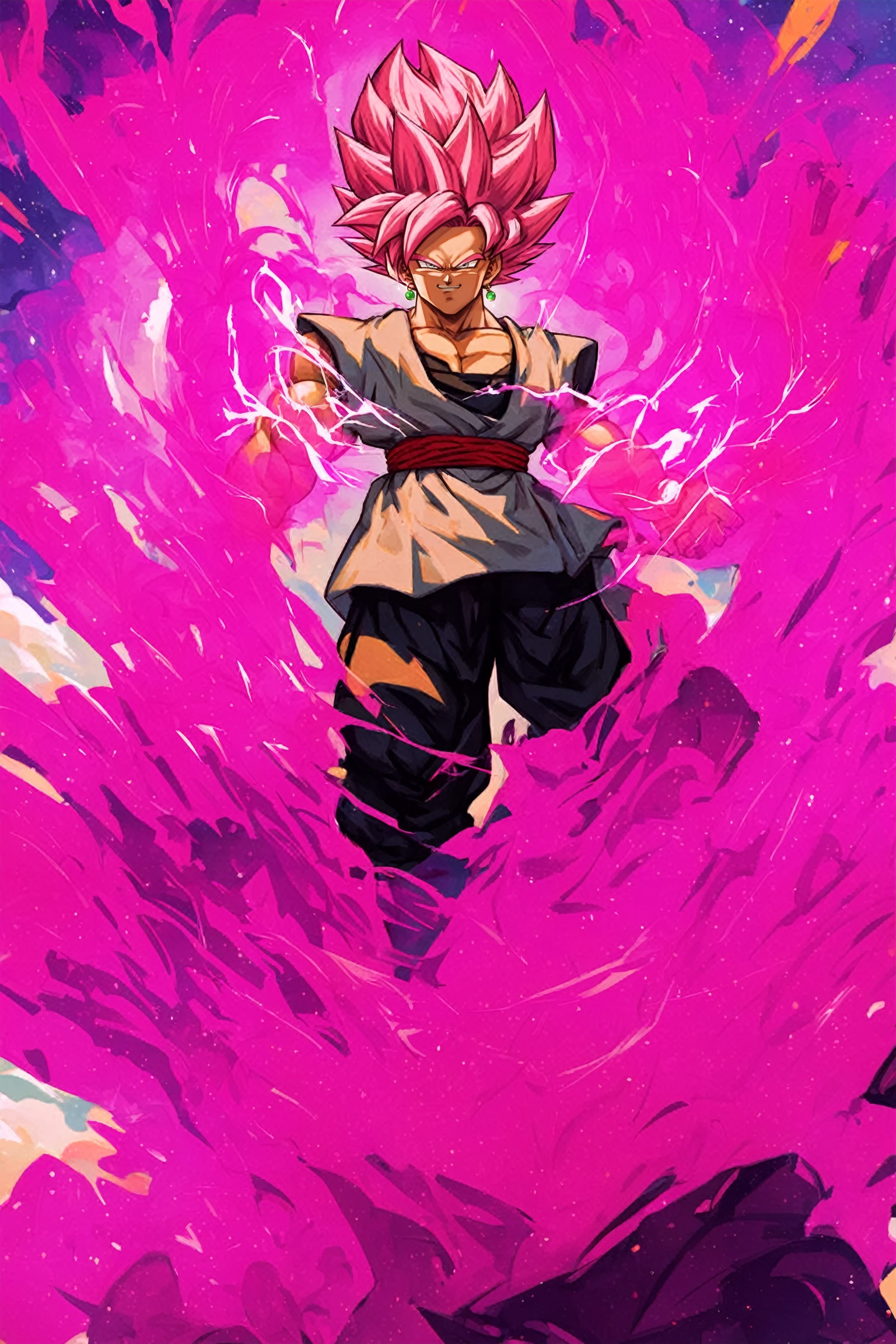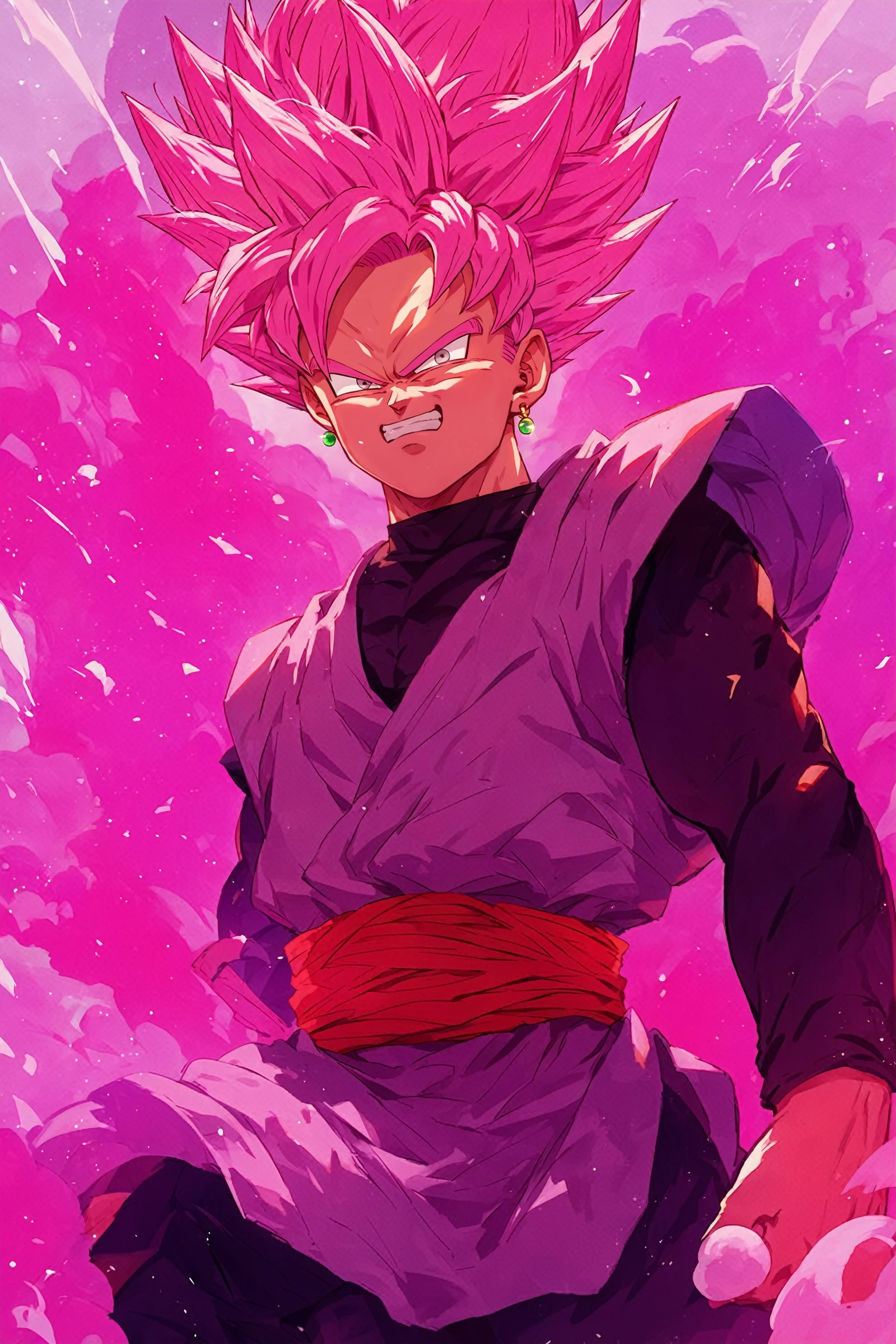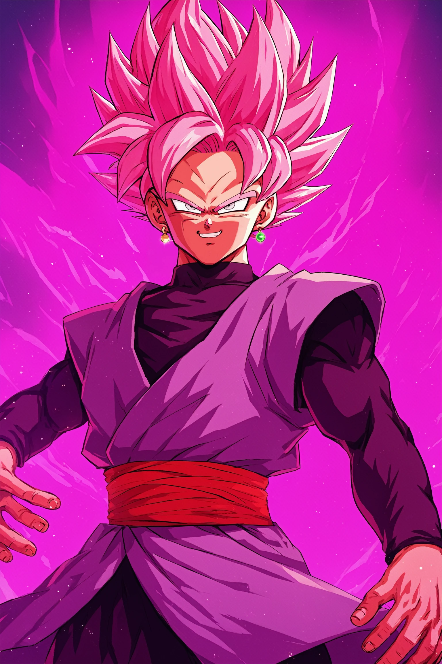Triggerwords: rosev3, spiked hair, pink hair, grey eyes, super saiyan, single earring, dougi