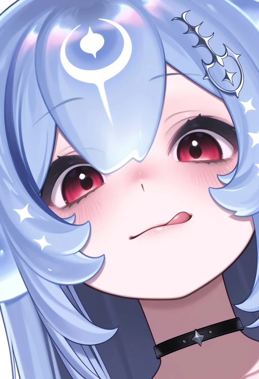 Rocker Bao, rocker_bao, virtual youtuber, red eyes, blue hair, bangs, very long hair, multicolored hair, black choker, jewelry,
