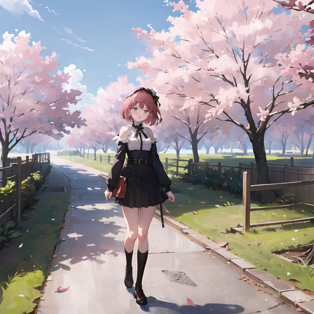 <lora:Sakura:0.3>, sakura tree, sakura trees, falling leaves, pink leaves