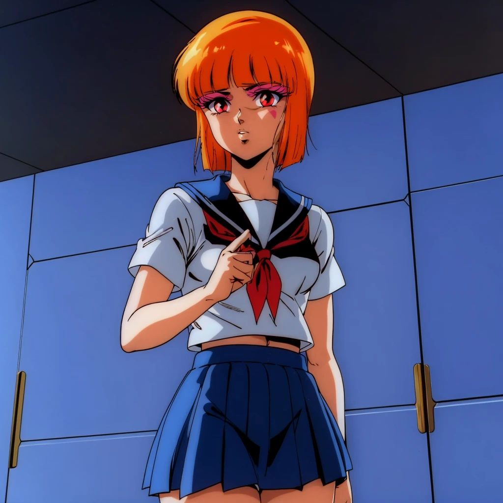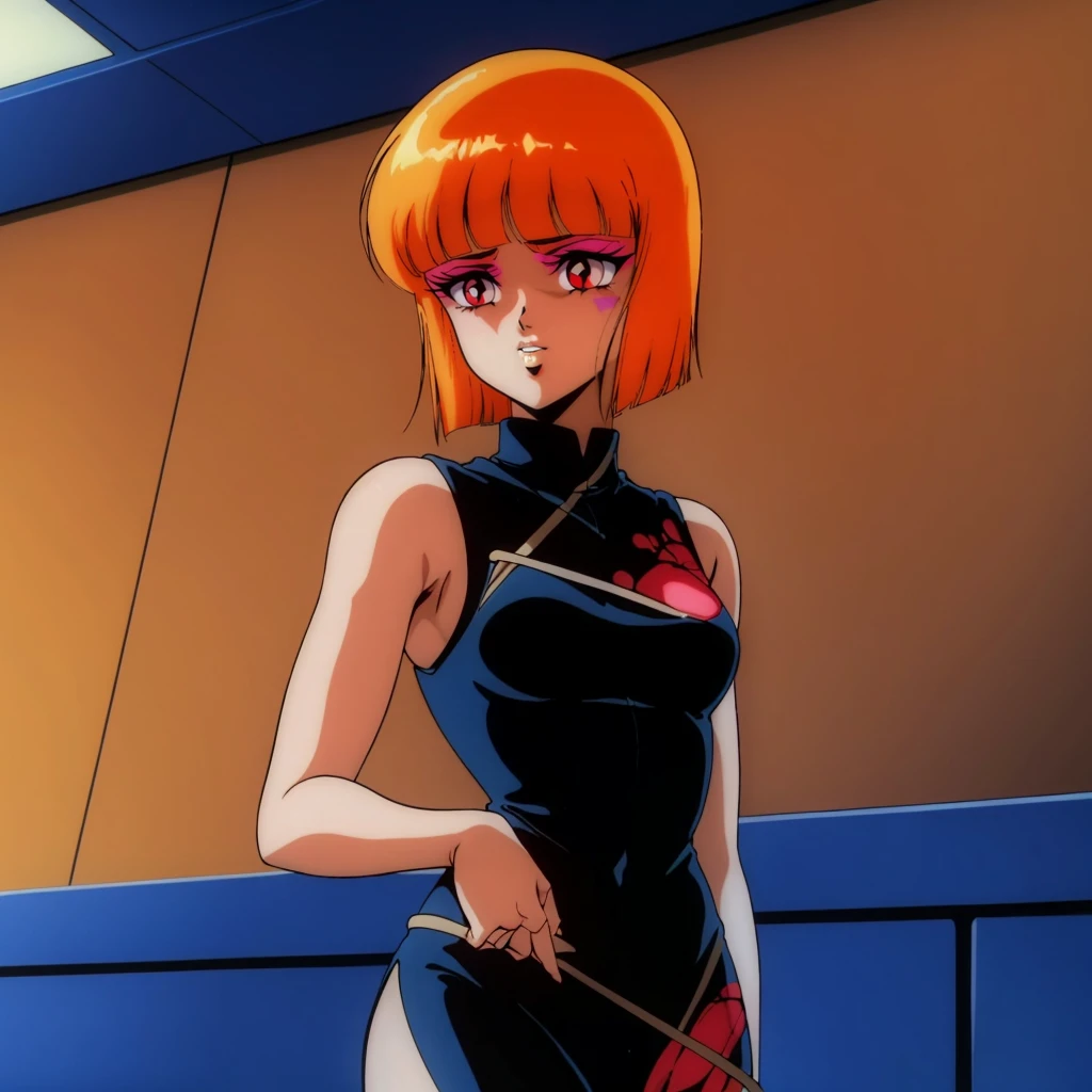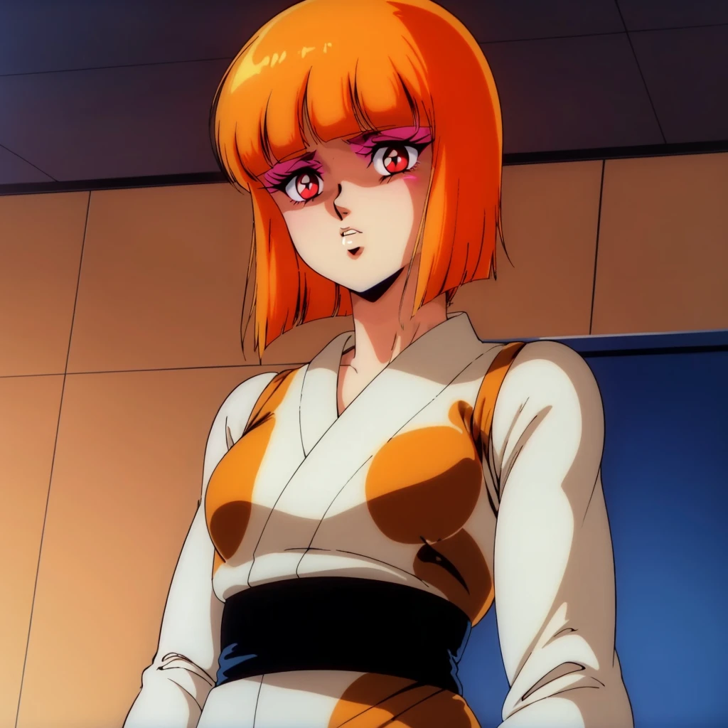 FI1Sepia001,1girl,orange hair,short hair,eyeshadow,red eyes,retro artstyle,1980s (style),