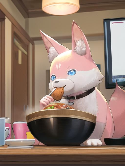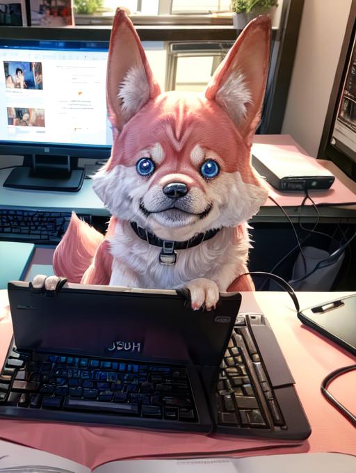Here's the surprise "Hololive Character"! Koyori's Assistant-kun is your identity as long as you participate in her lab experiments! Armed with the power of AI generation, you can now generate your coyote-body into different AI environments! 頭脳! This was overall a pretty fun and cute LoRA to make. Some checkpoint models that favor female characters will try to make a furry so you need to negative that idea out! I hope you all have fun generating the adorable pink coyote!