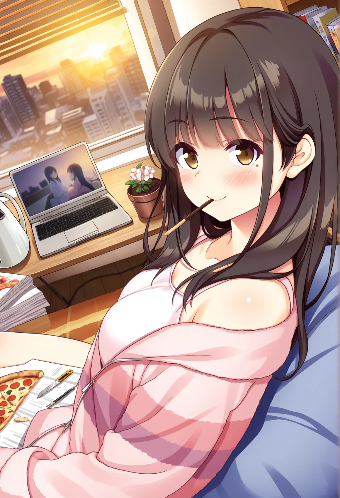 pink striped jacket,striped clothes,white camisole,loungewear,