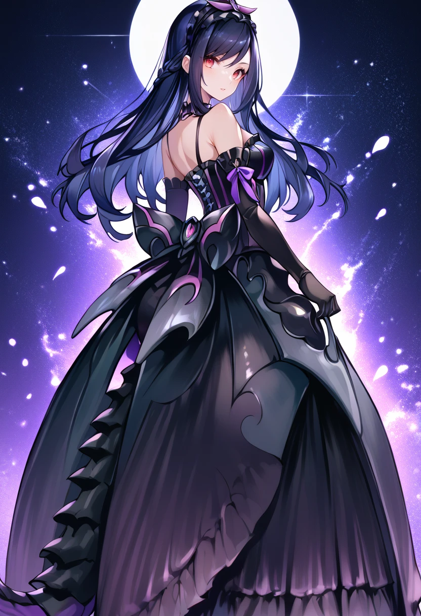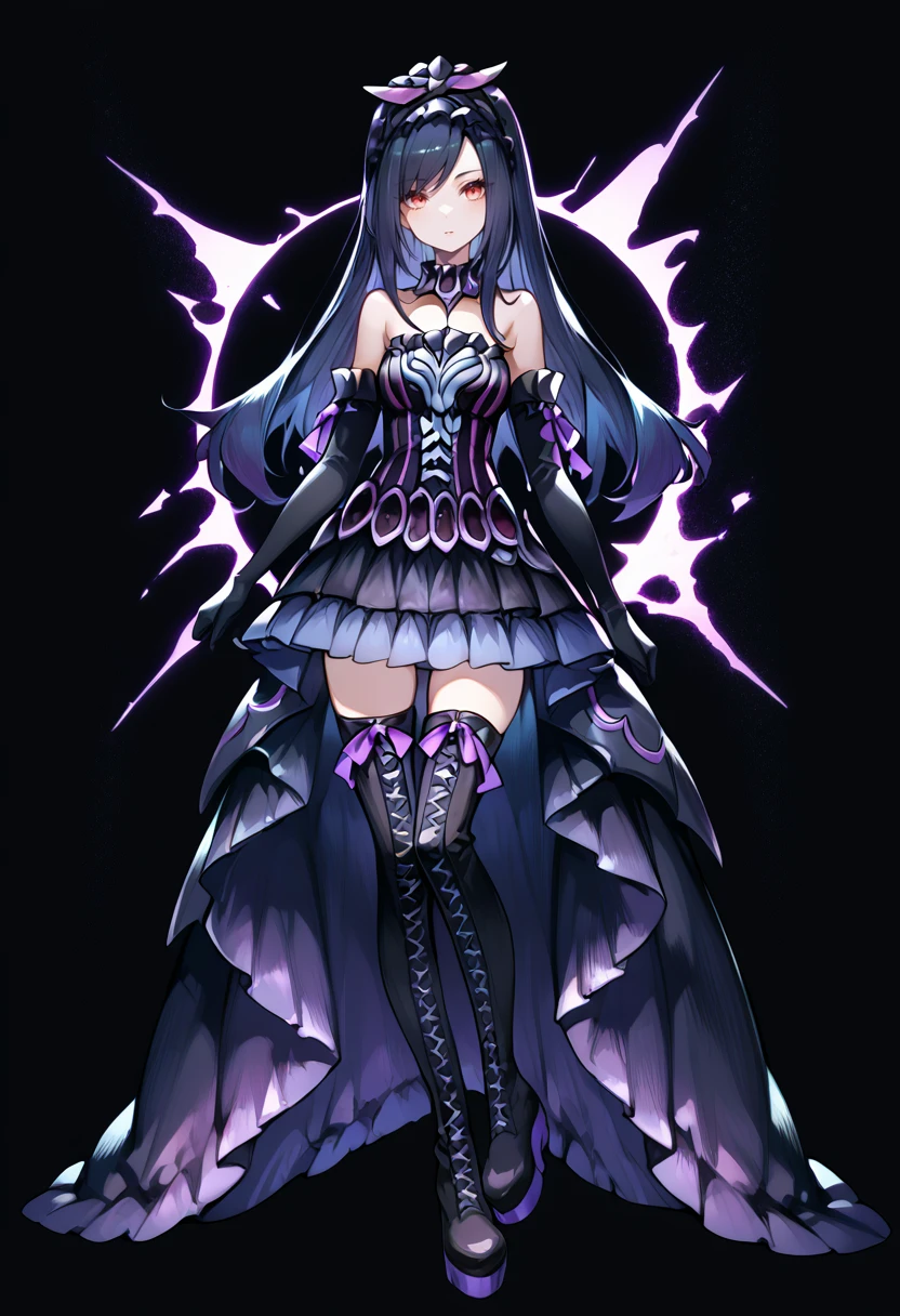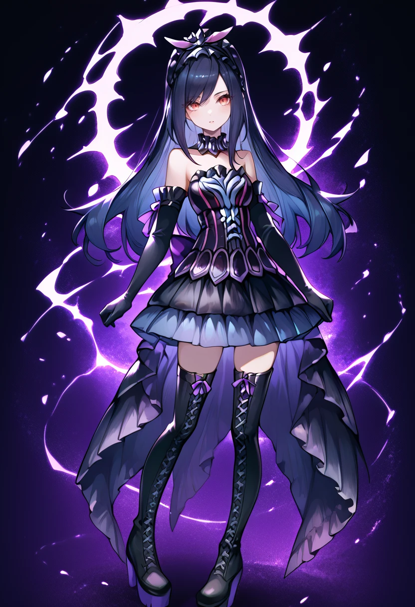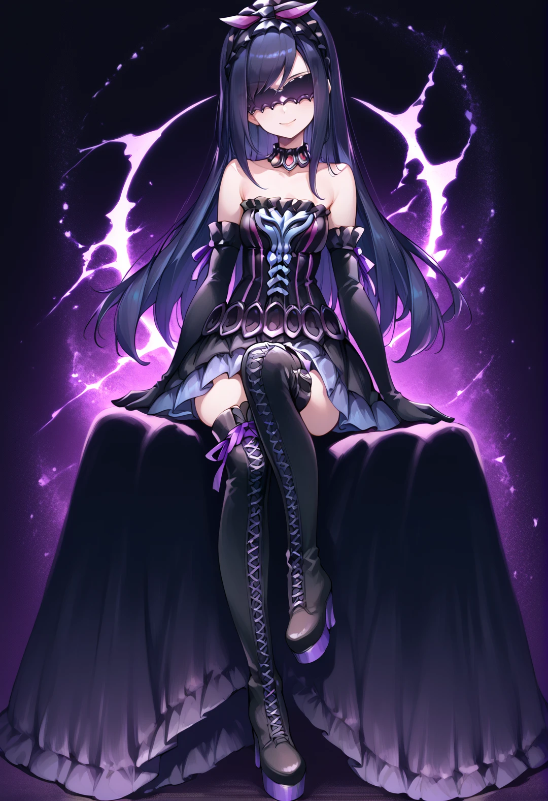Tags (clothes, phase 1): black elbow gloves, black thigh boots, purple hairband,