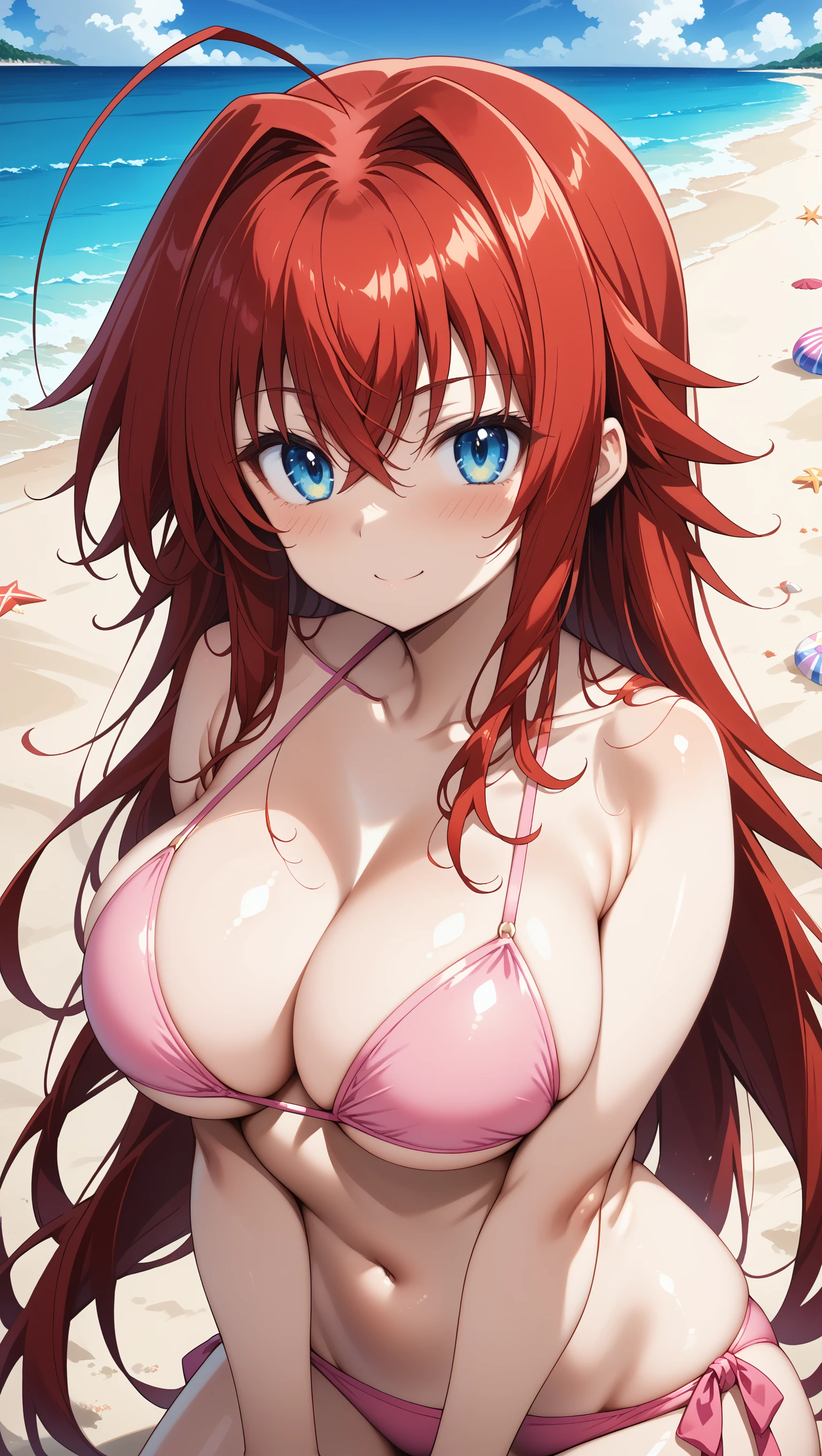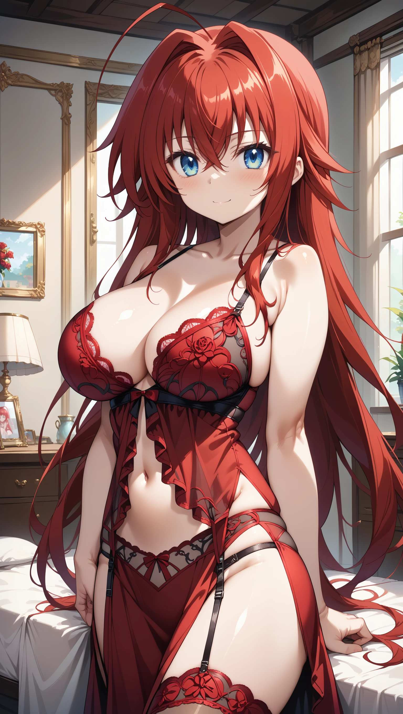 Rias Gremory, large breasts, smile, blue eyes, ahoge, long hair, hair between eyes, red hair,