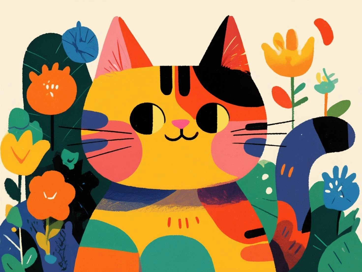 This model specializes in a vibrant and modern flat illustration style. It builds images using bold, simple blocks of color and clean, confident outlines, giving every piece a strong graphic design sensibility. The color palette is consistently saturated and high-contrast, creating immediate visual impact. Fun, simple patterns and textures are often added to inject energy and detail into the compositions. This style is perfect for creating trendy characters, adorable animals, and any artwork that calls for a contemporary and eye-catching aesthetic.