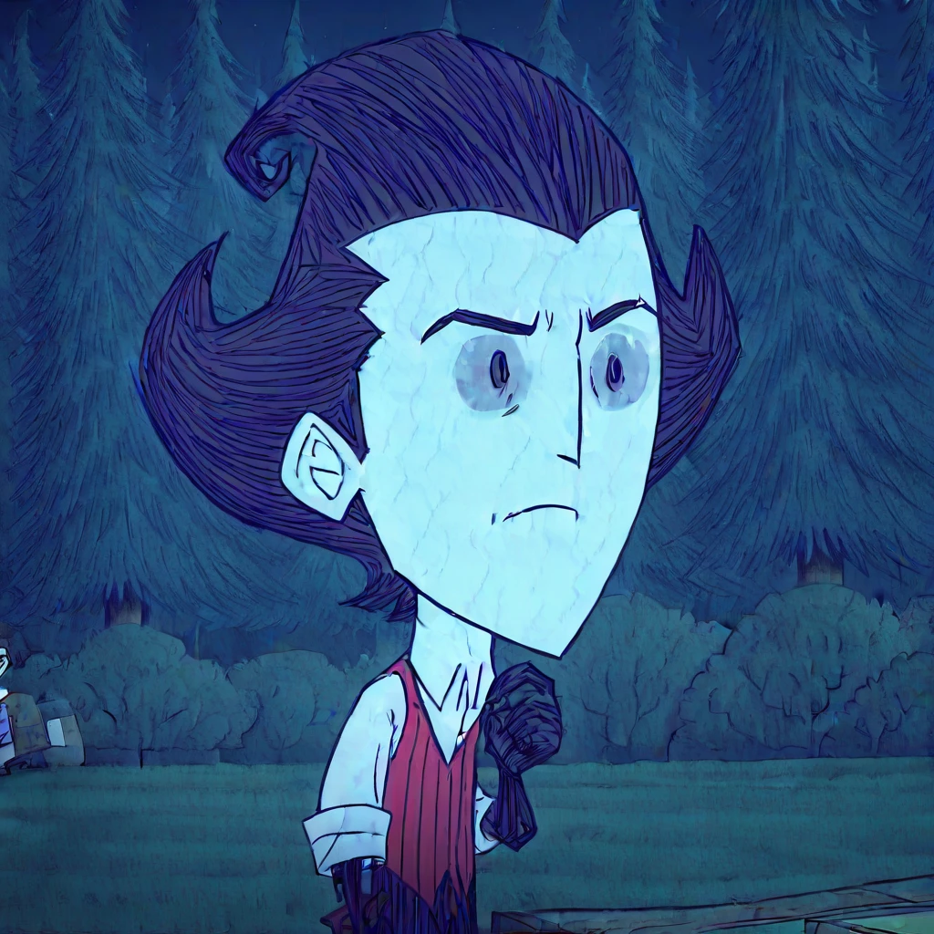 Wilson Higgsbury, 1boy, solo, black eyes, red sweater vest, white shirt, collared shirt, long black gloves, black pants, black shoes, black hair,