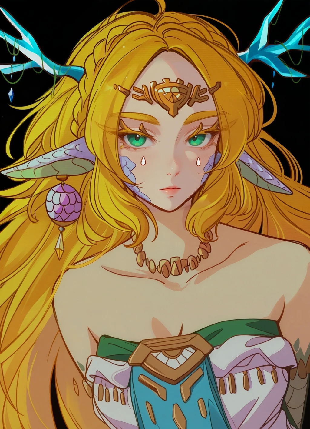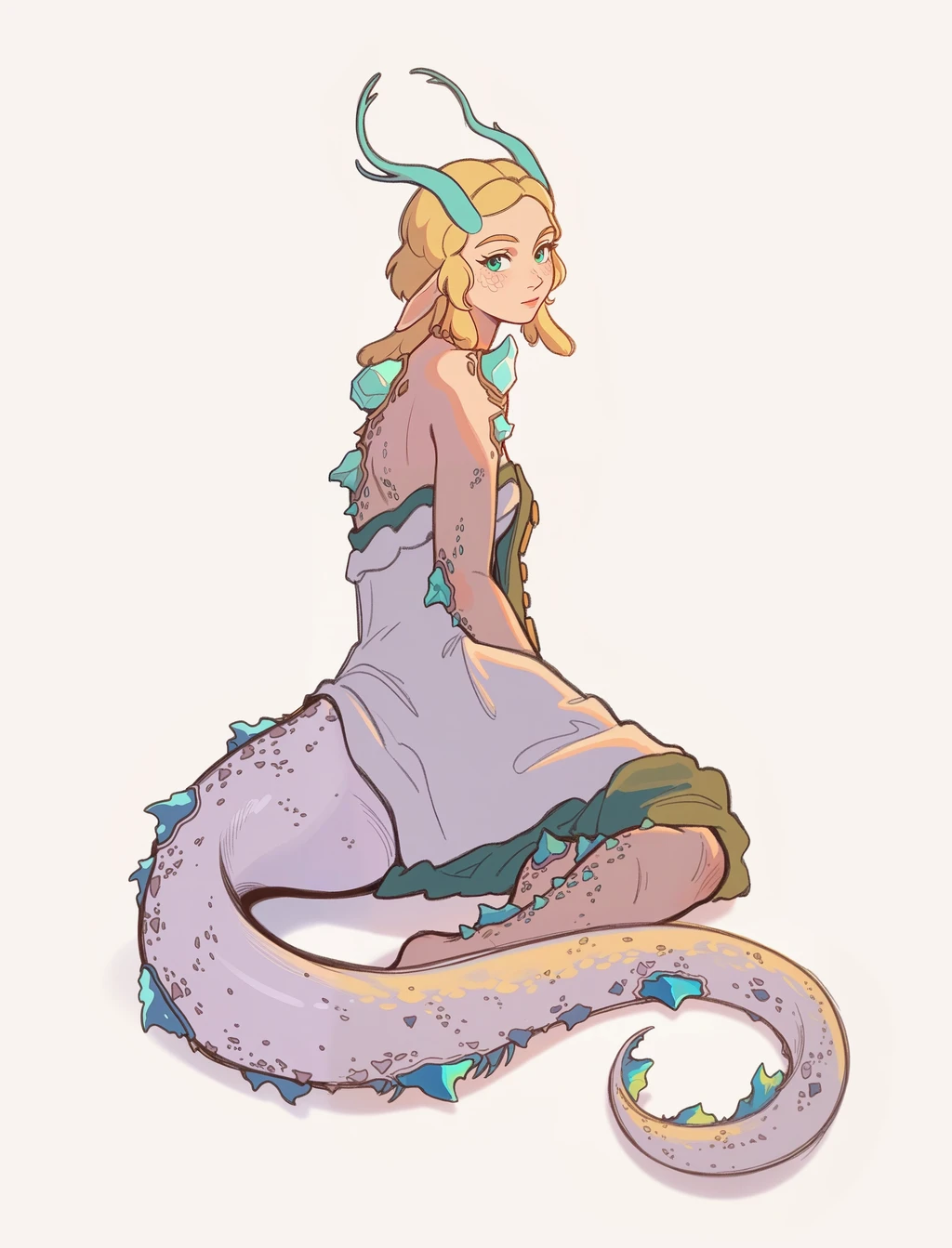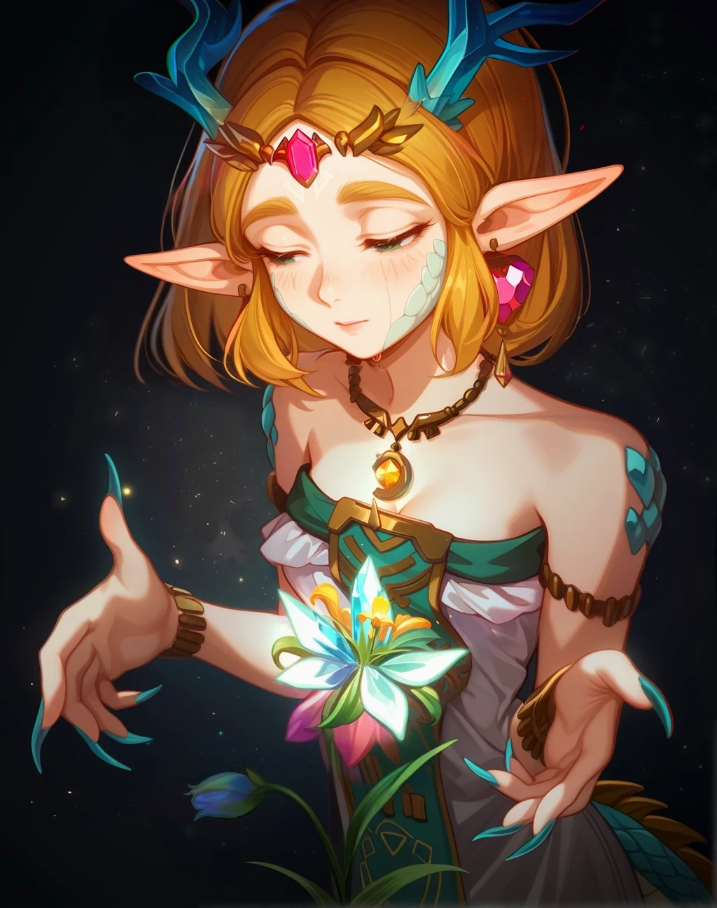 (Positive Prompts) lyndrgzdla, monster girl, dragon girl, dragon tail, dragon horns, princess zelda, claws, scales,
