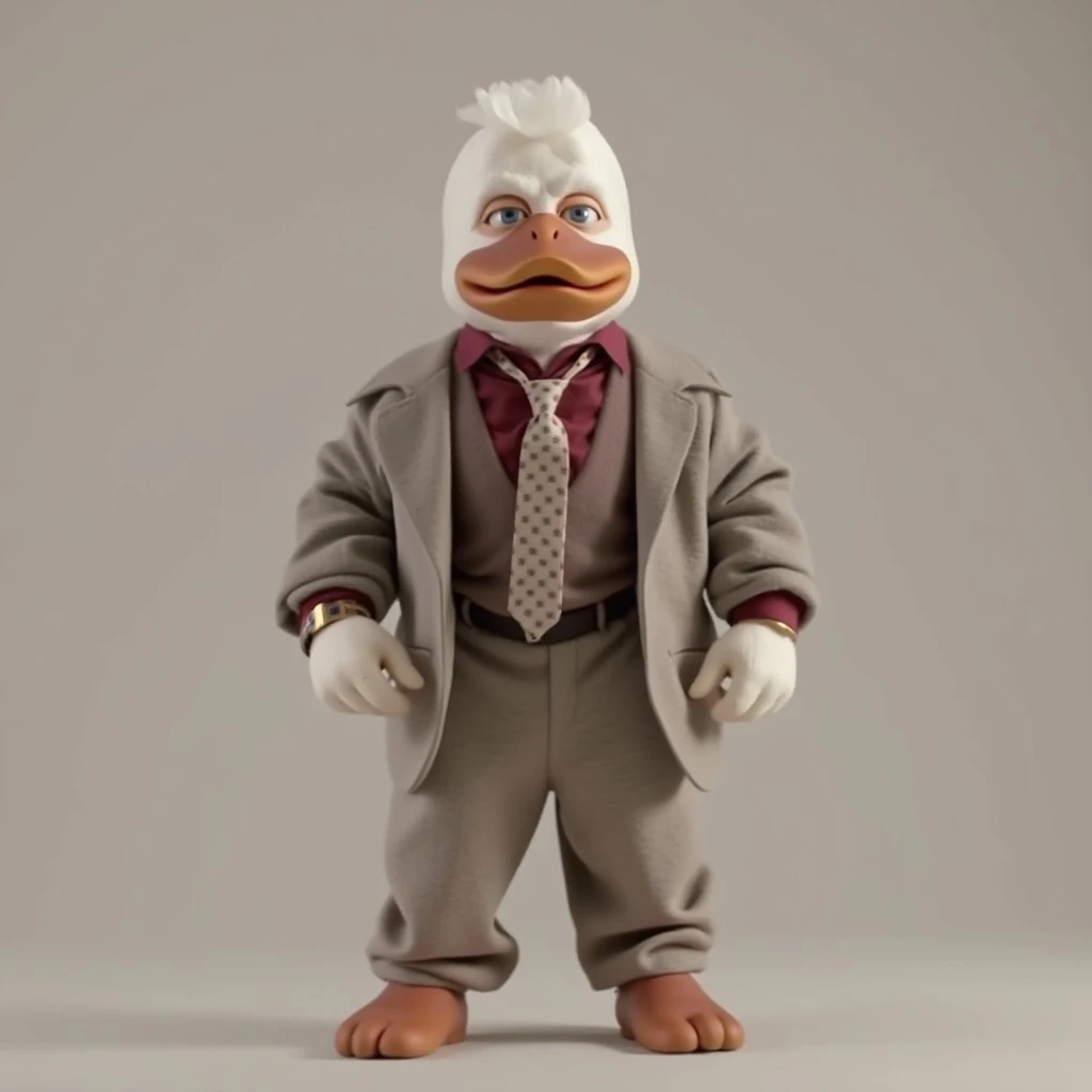 This is HOWARD THE DUCK from the old classic 80s movie. He is a fun character from another planet.