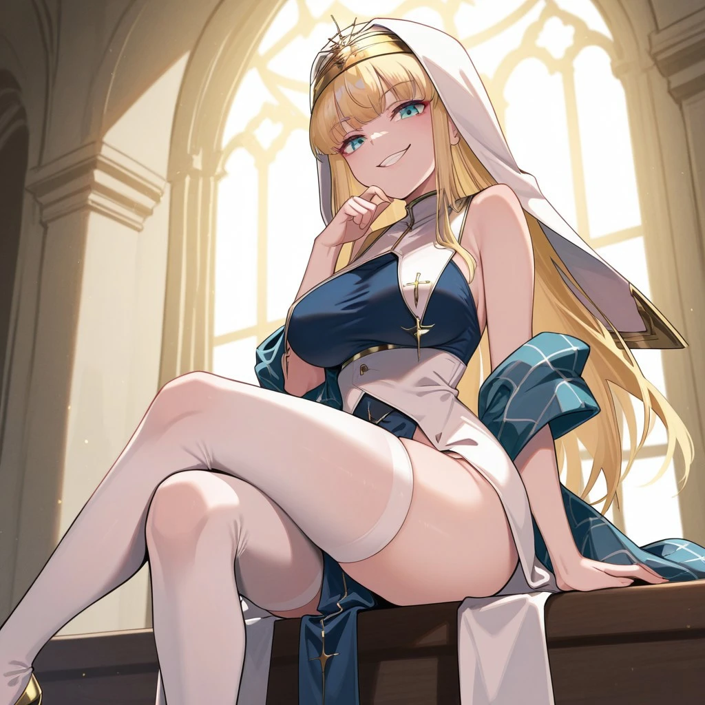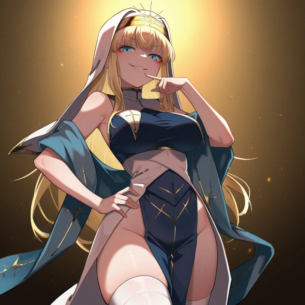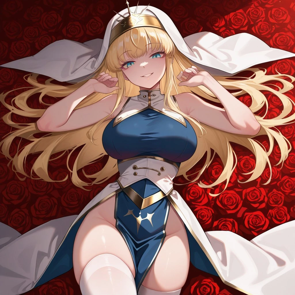 Character: 1girl, long hair, blond hair, blue eyes, large breasts,