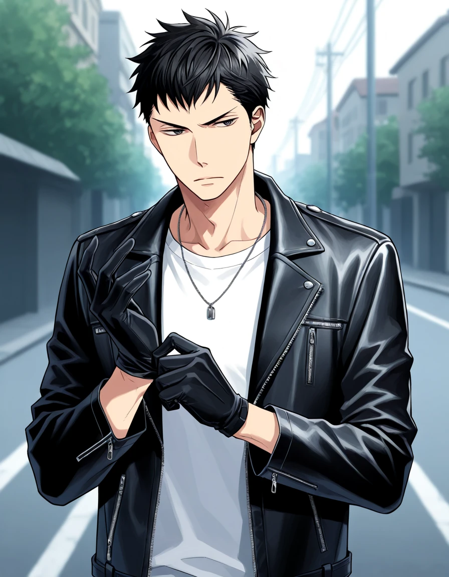 black jacket, white collared shirt, necktie, suit