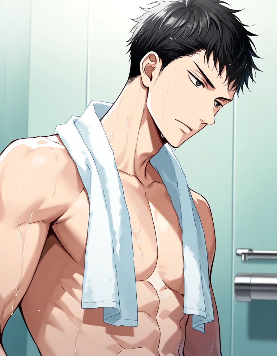 black hair, black eyes
