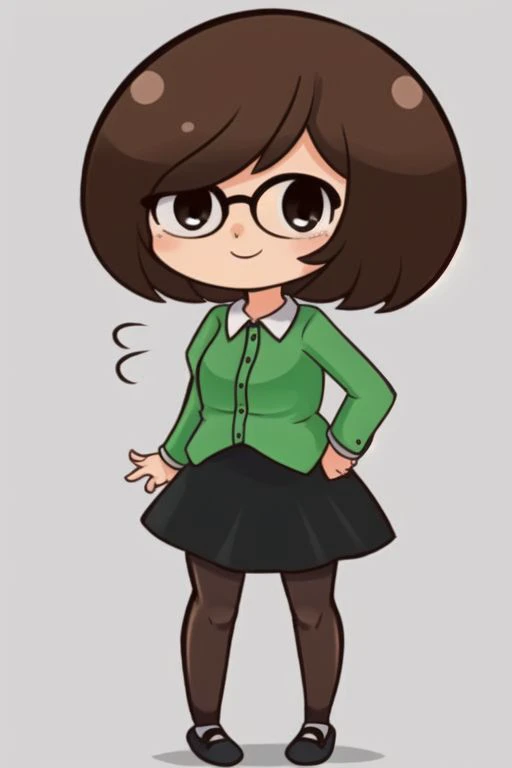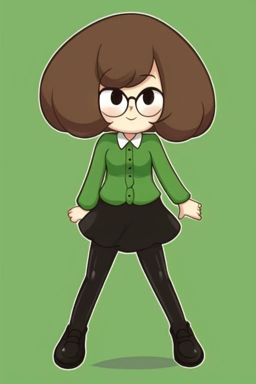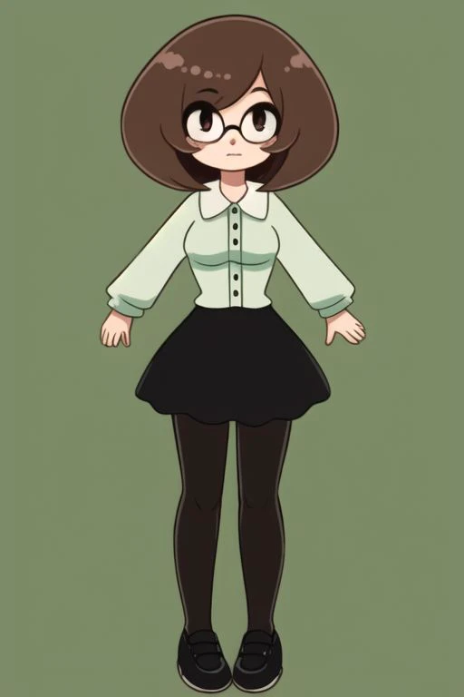 pantyhose, green collared shirt, white button shirt, black skirt, black shoes