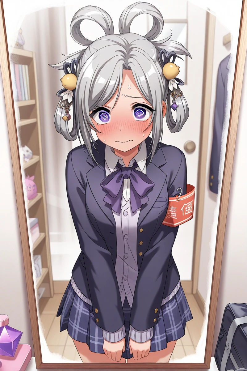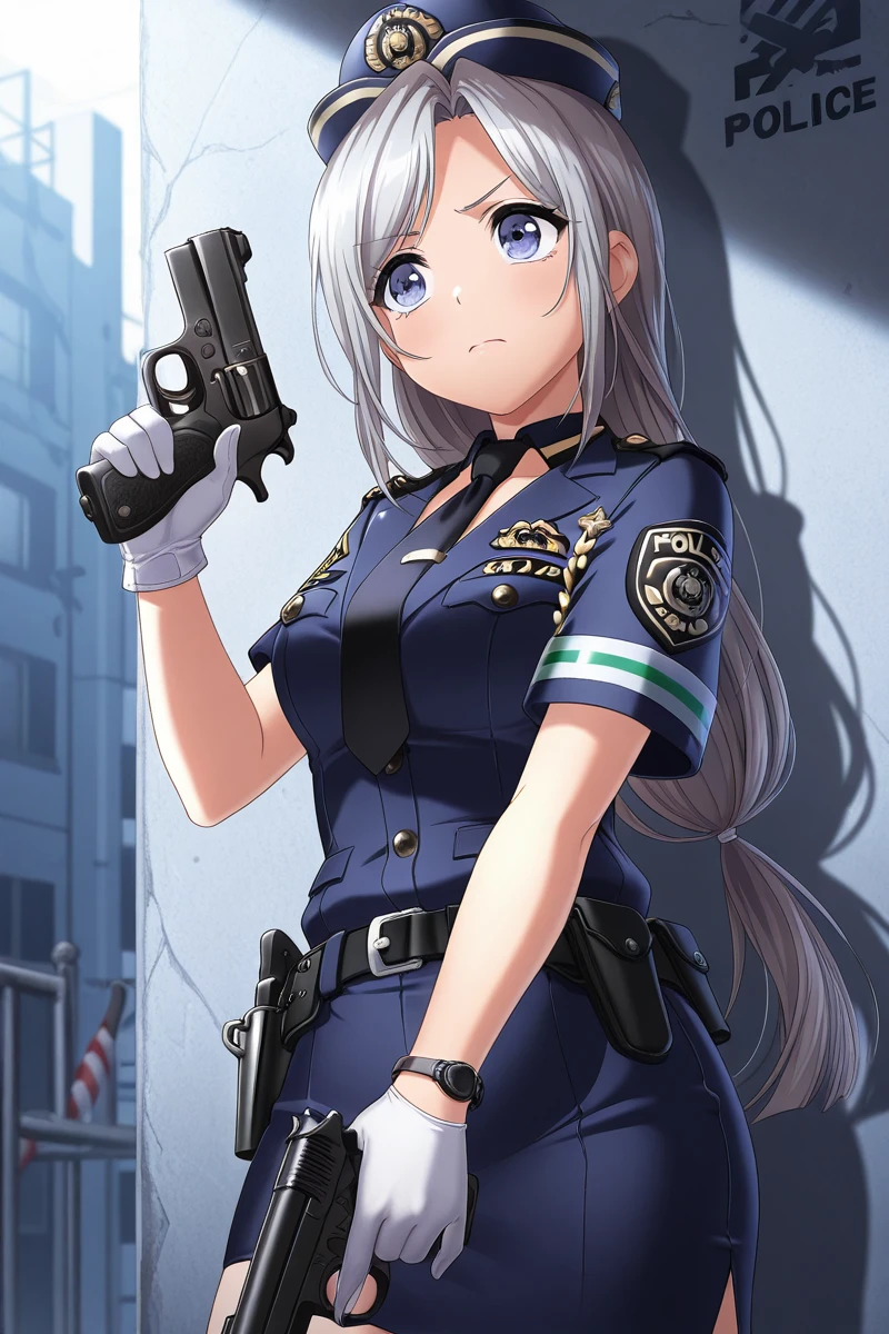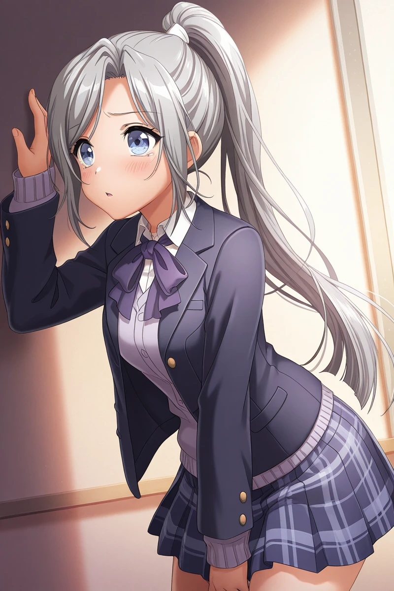ibuki, 1girl, solo, skirt, school uniform, jacket, blazer, ponytail, grey hair, long hair, blue eyes, pleated skirtBikini Ibuki: