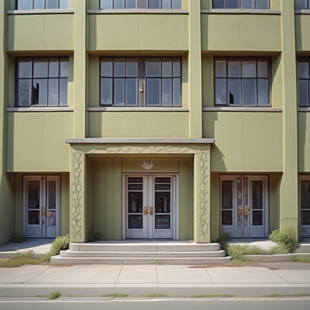 cpollabandbuilding, cpollabbdextent, exterior of corporate building, entrance door, outdoor ,abandoned building, liminal, liminal space, olive green, filthy, damaged, crap, waste, wasted, blood, broken stuff, horror, depressing, death and decay